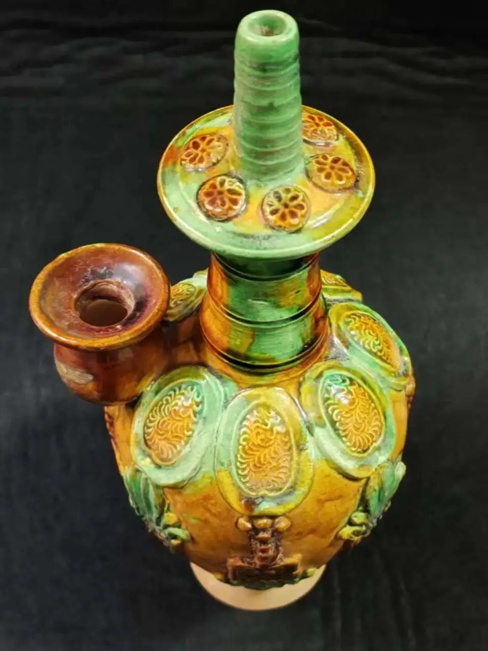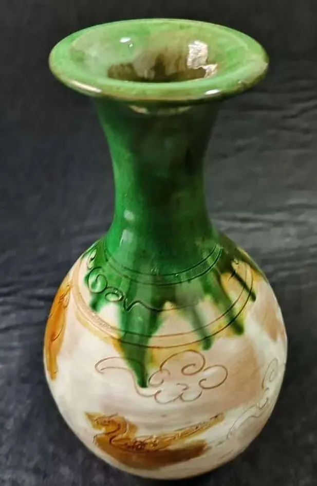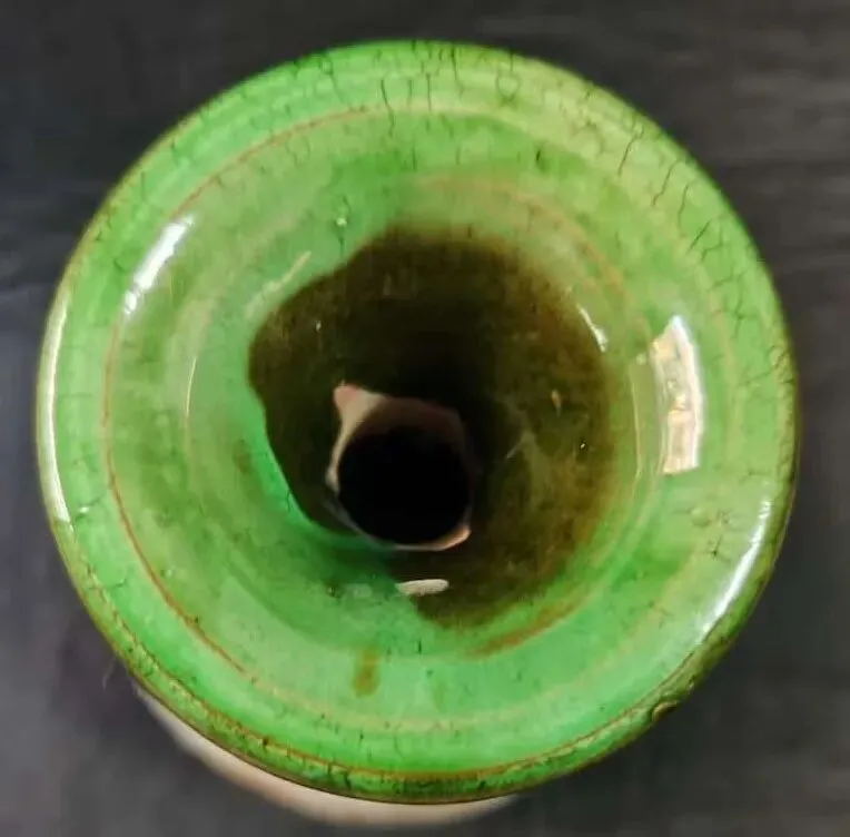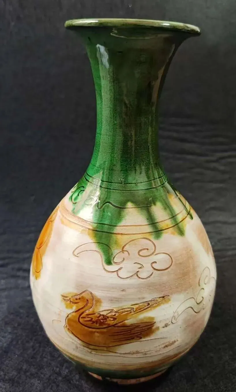第五件闽清义窑白釉点彩兽耳罐,凭图判断为南宋真品。第五件当阳峪窑绿釉三彩玉壶春瓶,凭图判断为现在仿品。友情提醒: