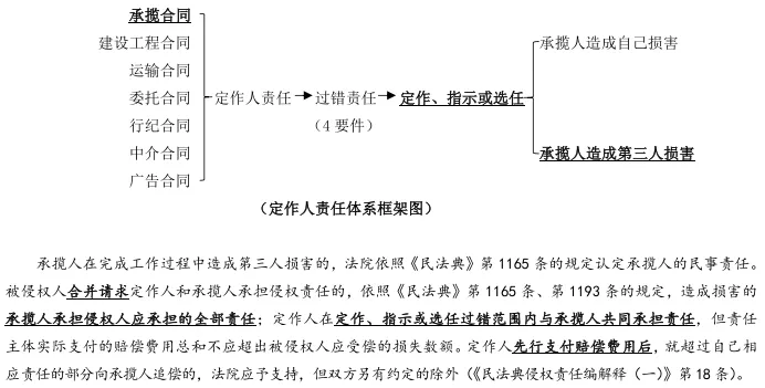 1. 承揽人责任:造成损害的承揽人承担侵权人应承担的全部责任(核心原因:承揽人具有独立性和自主性,主要依靠自身技术/技能独立完成工作,不受定作人指示或支配)。