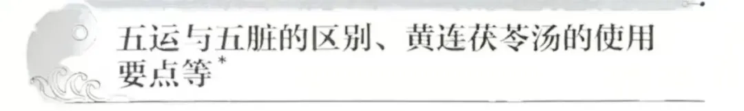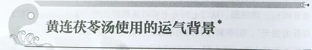 范先靖按:五运六气中的五运与脏腑的五行属性不是同一层面的概念,两者不能等同,五运中的太过不及也不能与虚实直接对应等同。黄连茯苓汤用于水运太过之岁,药用:黄连、茯苓、麦冬、半夏、远志、黄芩、车前子、通草、甘草、生姜、大枣。五运六气理论最重要的观念是天人一体的整体观,病象的出现一般都有运气因子的加持,如果没有相应的运气因子,需要考虑辨证思路是否正确。