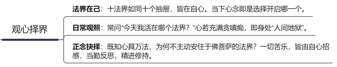 当明白十法界全部都在自己的一念心时,就能理解:你的心就是整个宇宙、整个世界就是你的心、你的心是全法界的显现,这就叫做“一念三千”。