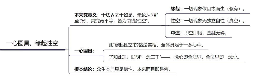 所以“本末究竟”是要告诉我们:我们的一念心全部具足“十如是”,它都是即空、即假、即中的缘起。