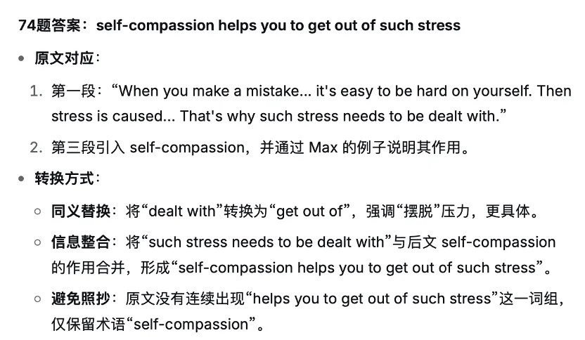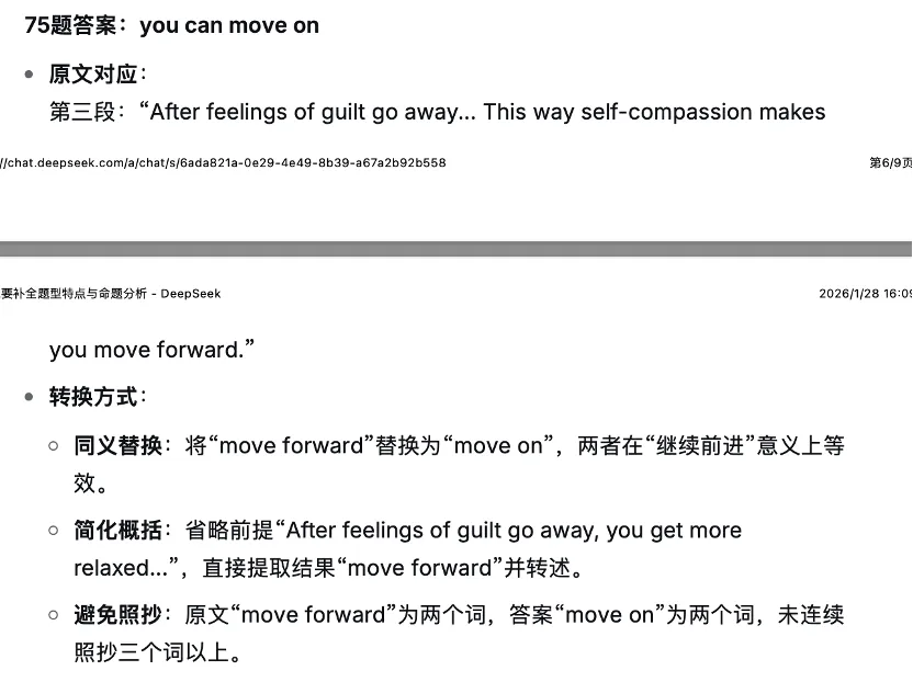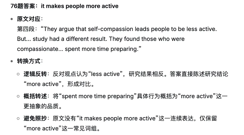 整体来说Deepseek 分析得很不错。现在我需要让他罗列出原文中的信息和标准答案,思考标准答案是如何基于原文形成的。