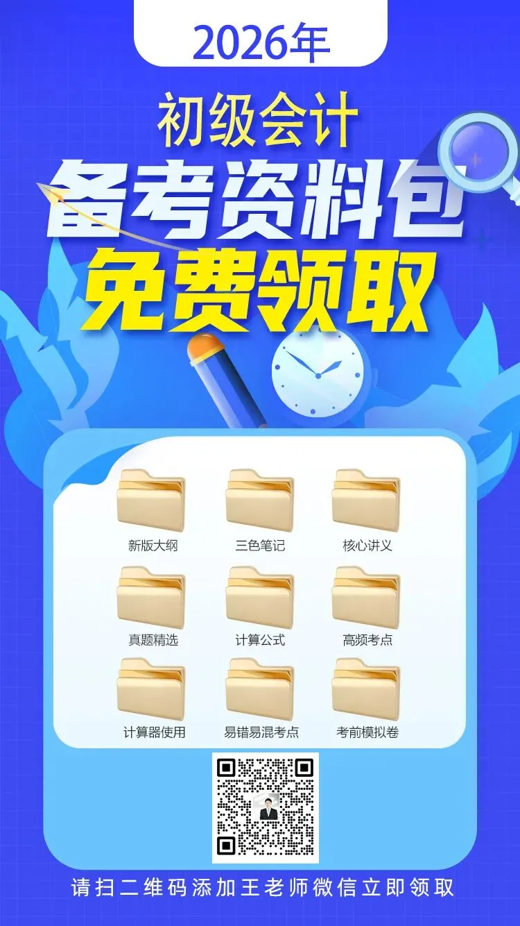 准备参加2026年初级会计师考试的同学注意啦!为了帮助大家更好的备考,本公众号为大家免费提供2026年新大纲备考资料,请大家添加王老师微信,免费领取,在考试方面或学习方面有不清楚的也可以随时咨询老师哦。