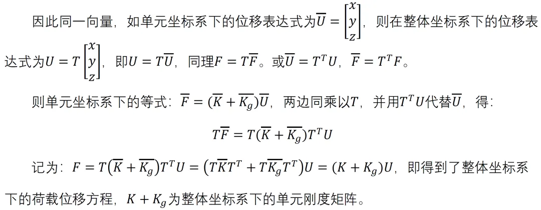 。则单元坐标系下的向量与整体坐标系下向量的关系如下:(1)预应力钢管混凝土柱,施加的预应力多少对钢管混凝土柱的稳定承载力几乎无影响;(2)自行车刹车时,细长的刹车线的自平衡力不会产生屈曲;(3)内压外拉的套管柱,其整体稳定承载力不会因为自平衡力提高或降低;(4)刚度矩阵的行列式为零,可以作为结构到达临界点的依据。DS公众号,敬请关注