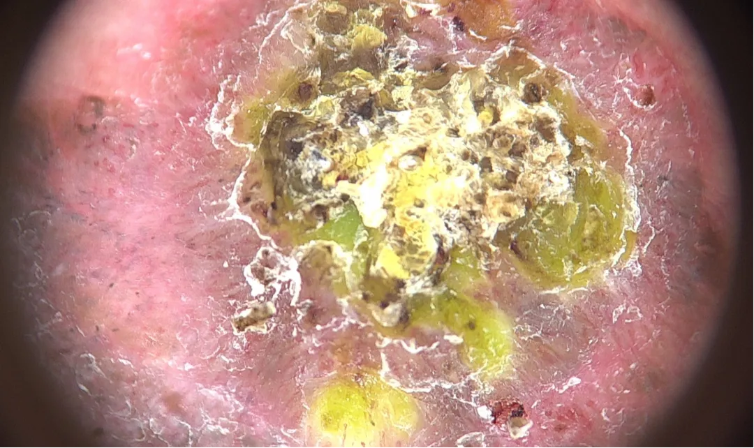 ➪皮损表面一般无破溃、结痂,但也有报道显示皮损表面可破溃并发感染,这种现象往往可能提示恶变。