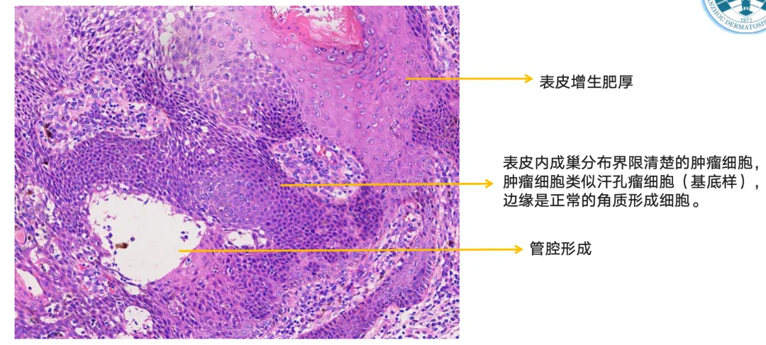 ①由汗孔细胞和透明细胞组成境界清楚的巢,形成“Jadassohn 现象”;