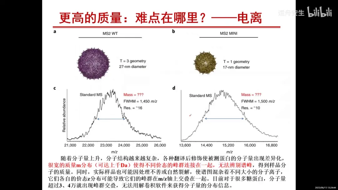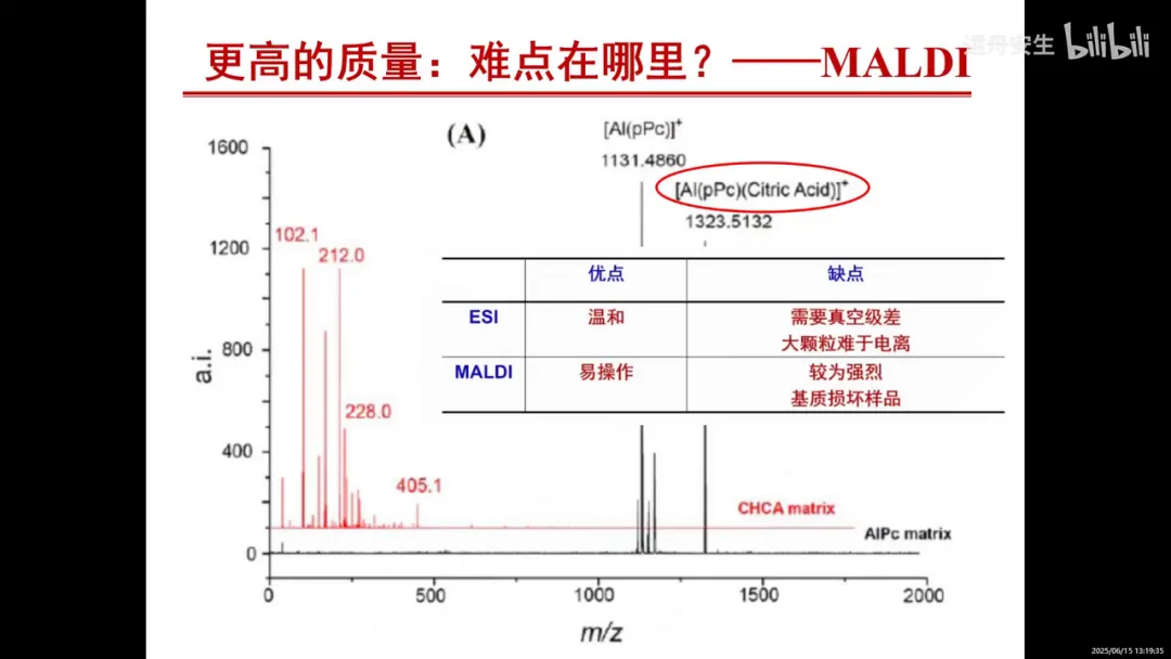 对于更高质量的颗粒,硬电离手段显然不可行,因此我们通常会考虑使用ESI和MALDI等软电离技术。然而,这两种技术都存在一定的局限性。