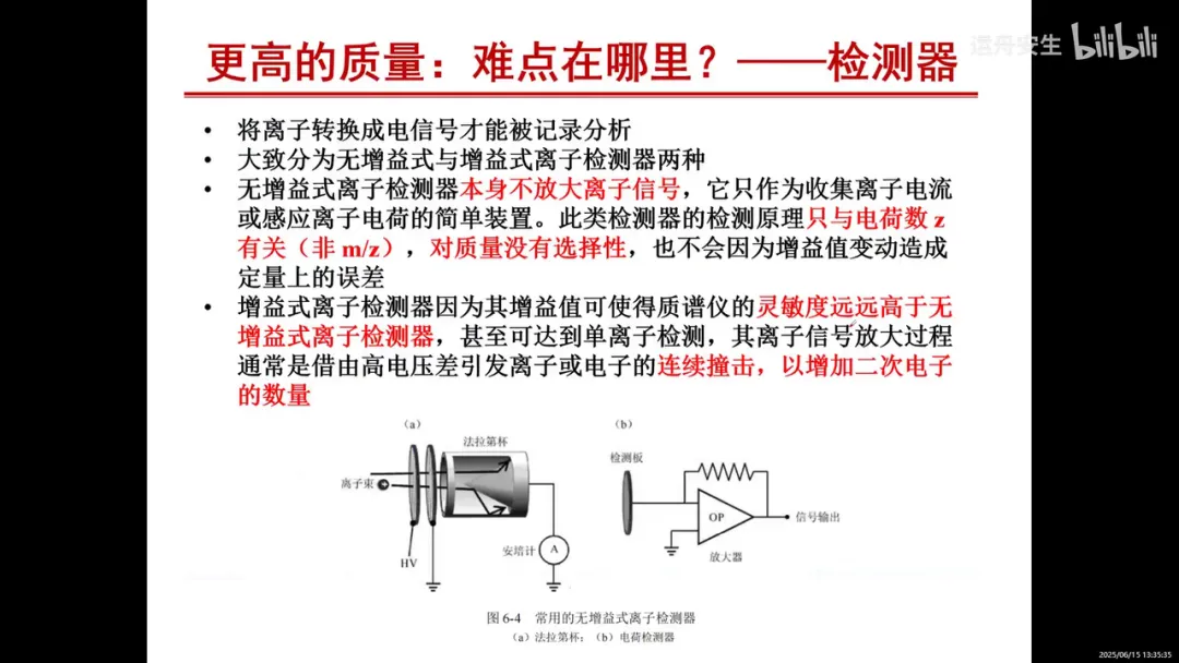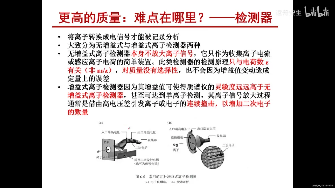 检测器的主要功能是将离子转化为电信号,以便进行记录和分析。检测器可以分为无增益式和增益式两种类型。
