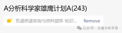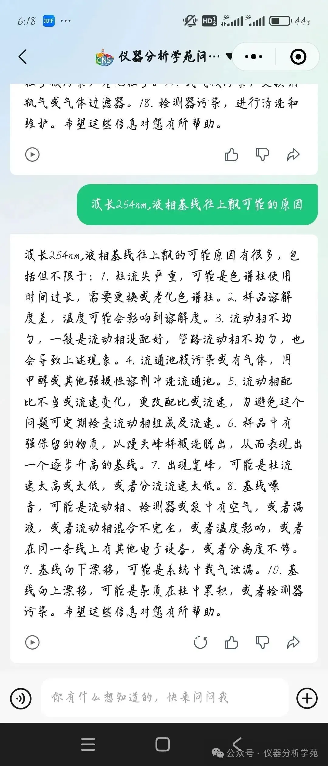 大家关注公众号这么久,有些知识搜不到,或者需要找色谱质谱科研资料,我们训练了几十本色谱质谱书籍及包括上千篇公众号文章,而且不断更新,现在关注公众号,后台发送需要提问问题,或者使用公众号中仪器分析学苑智能体小程序,就可以问答知识,快速找资料了 ,更多咨询问题和资料请关注仪器分析学苑知识星球