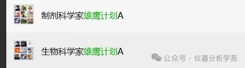 加入二:9.9元红包,直接入分析科学家雄鹰计划群C,生物科学家雄鹰计划A与制剂科学家雄鹰计划A,关注加星标公众号,在看点赞,转发公众号任意文章在朋友圈3h不删除,邀请入群