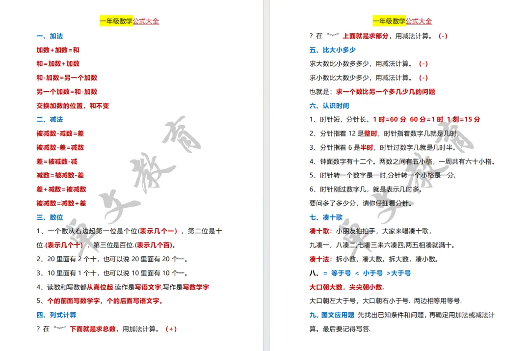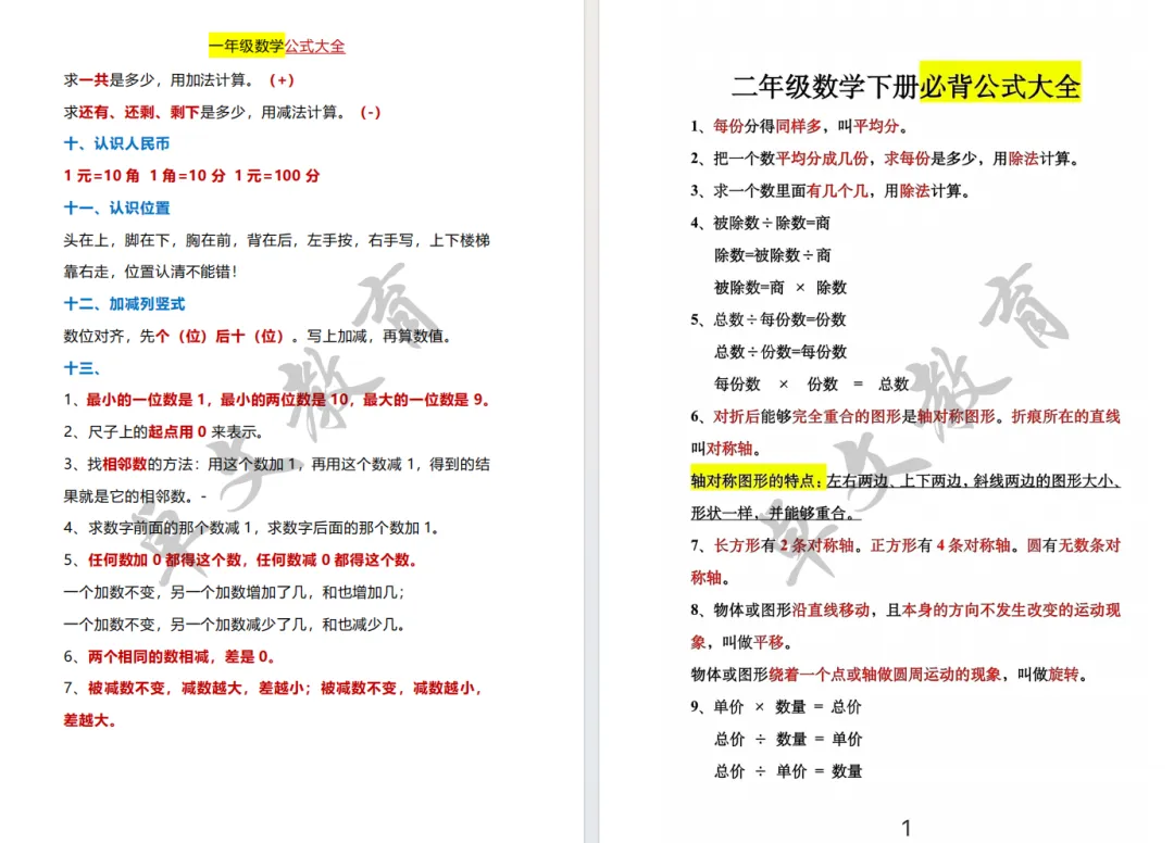 《小学数学 1-6 年级公式必备》