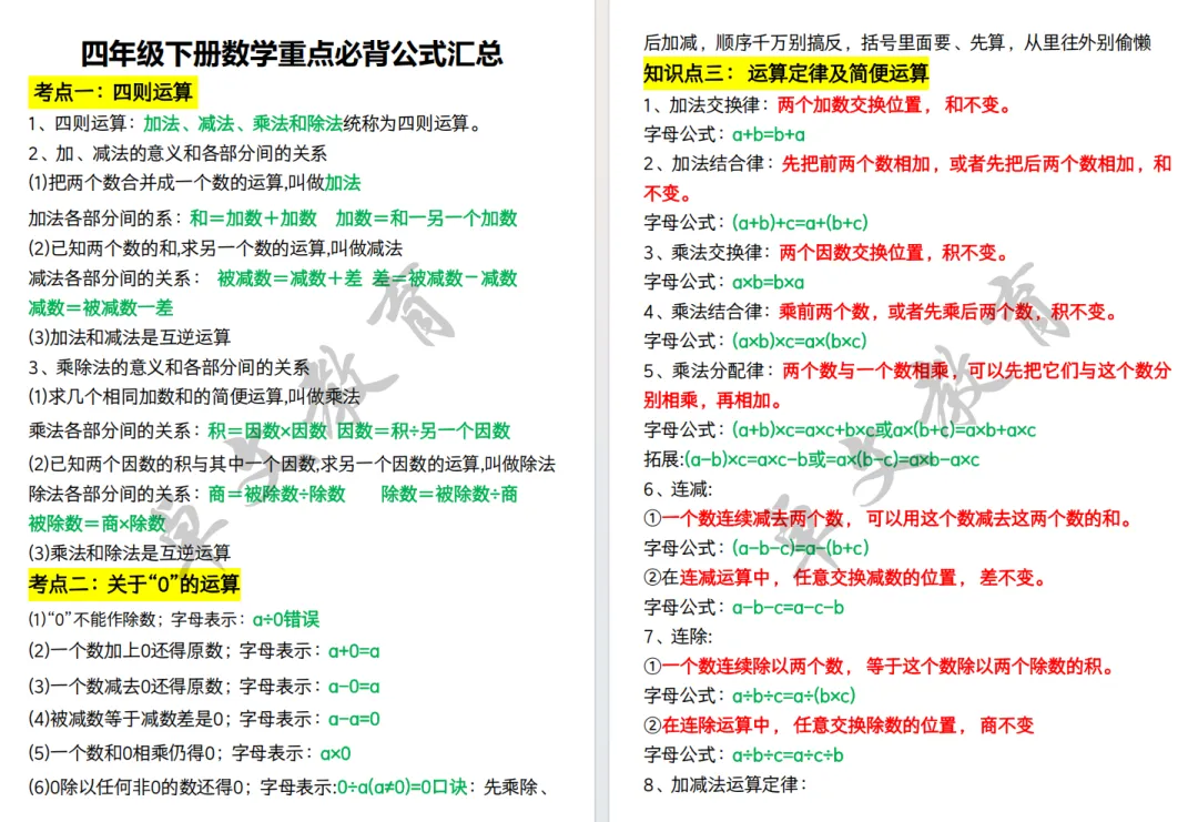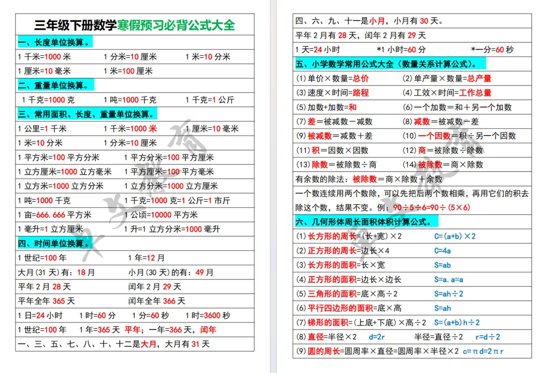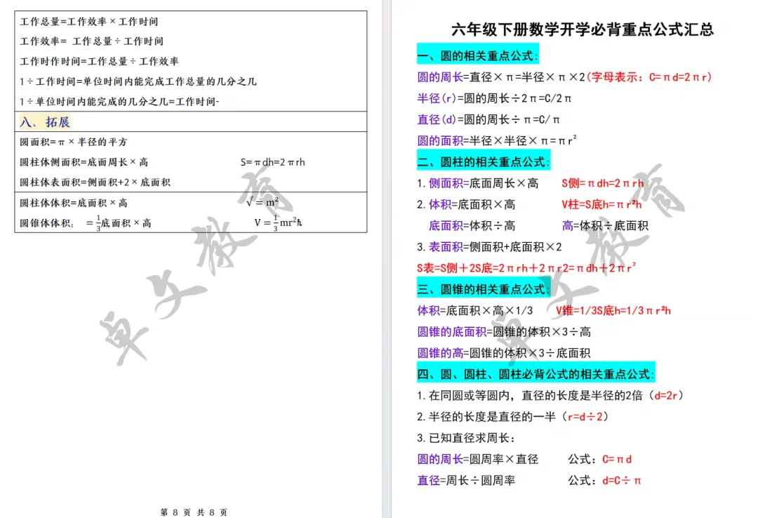 这份资料把 1-6 年级所有核心公式、