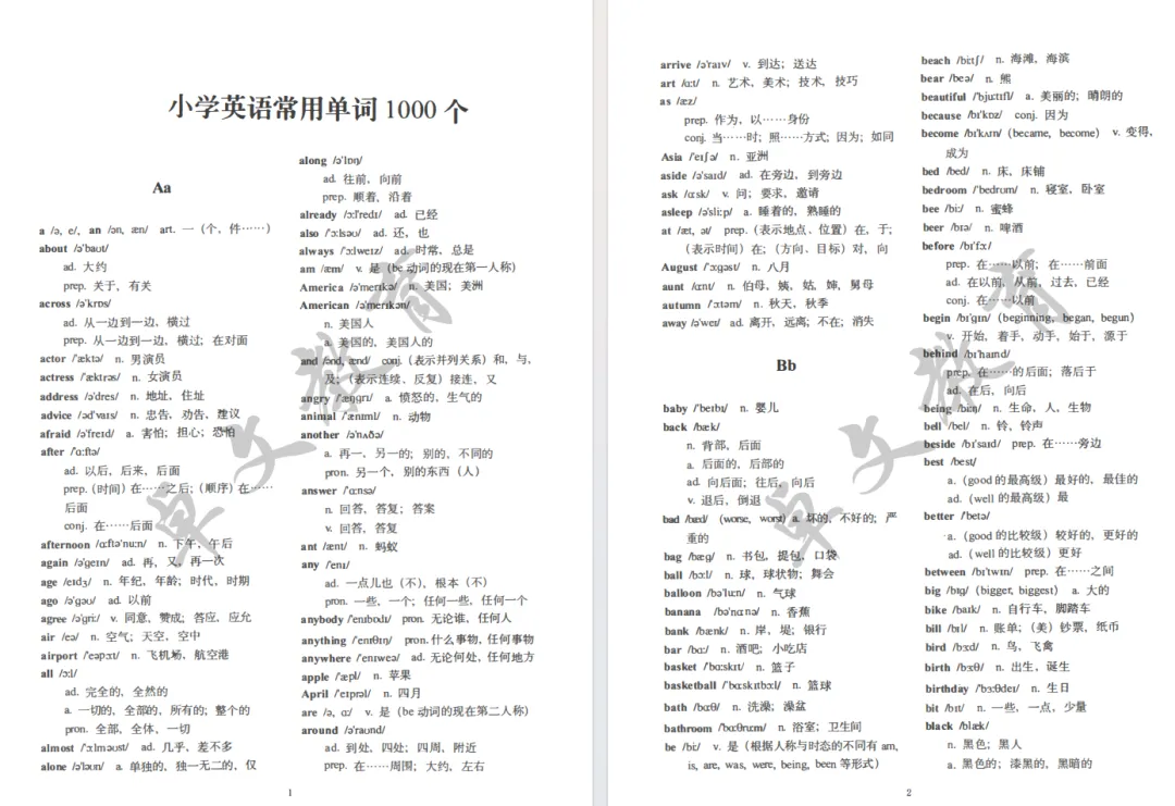 《小学英语单词 1000 个 + 常用词组 100 个》