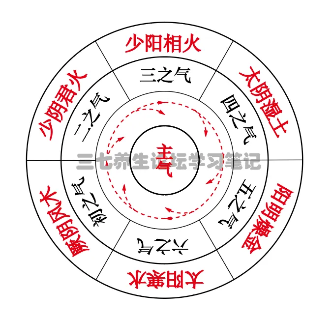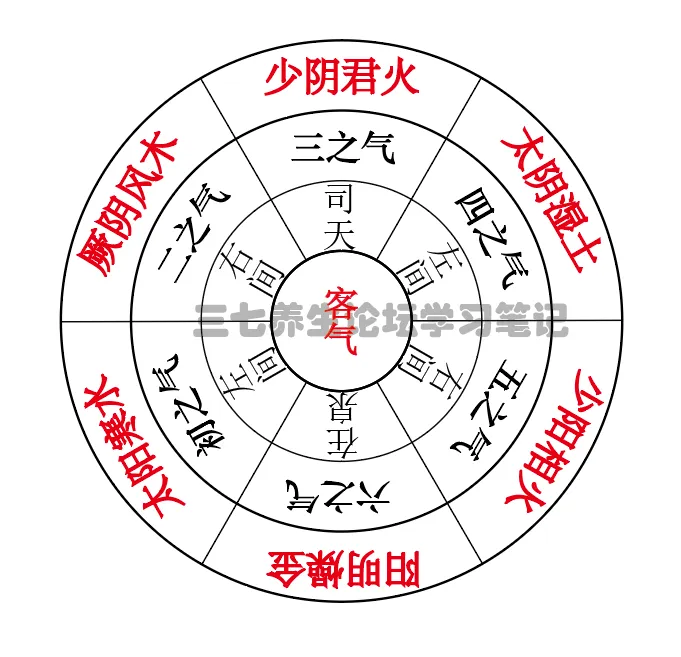 初之气(大寒1月20日-春分3月20日),主气厥阴风木,客气太阳寒水。地气迁,燥将去,寒乃始,蛰复藏,水乃冰,霜复降,风乃至,阳气郁,民反周密,关节禁固,腰(月隹)痛,炎暑将起,中外疮疡。