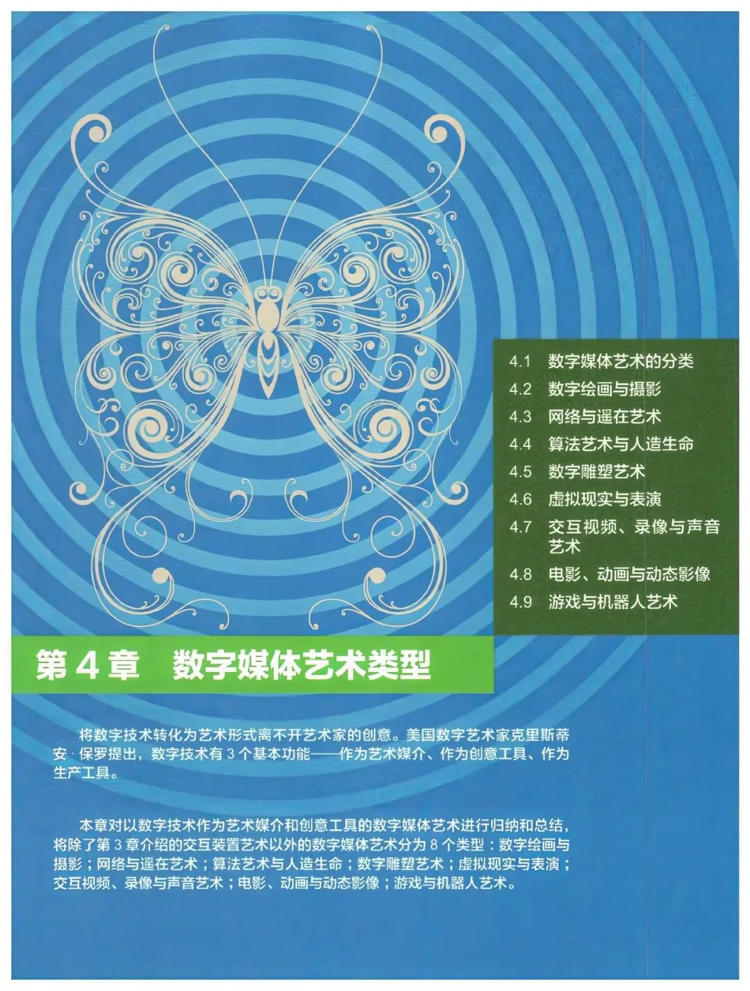 目录第1章 数字媒体艺术基础................................................................... 11.1 什么是数字媒体艺术 ...................................................................................... 21.2 数字媒体与新媒体 ......................................................................................... 51.3 数字设计师 ..................................................................................................... 81.4 分类、范畴与体系 ........................................................................................ 101.5 科技艺术与新媒体 ........................................................................................ 131.6 金字塔结构模型 ............................................................................................ 161.7 数字化设计体系 ............................................................................................ 171.8 数字媒体艺术的符号学 ................................................................................. 201.9 数字媒体艺术教育 ........................................................................................ 22讨论与实践 ............................................................................................................ 26练习及思考题 ......................................................................................................... 27第2章 媒体进化与未来.................................................................... 292.1 媒体进化论 .................................................................................................... 302.2 媒体影响人类历史 ........................................................................................ 332.3 媒体影响思维模式 ........................................................................................ 352.4 媒体=算法+数据结构 .................................................................................... 382.5 人性化的媒体 ................................................................................................ 402.6 可穿戴媒体 .................................................................................................... 422.7 人工智能与设计 ............................................................................................ 472.8 对媒体未来的思考 ........................................................................................ 49讨论与实践 ............................................................................................................ 52练习及思考题 ......................................................................................................... 53第3章 交互装置艺术...................................................................... 553.1 数字媒体艺术哲学 ........................................................................................ 563.2 墙面交互装置 ................................................................................................ 573.3 可触摸式交互装置 ........................................................................................ 603.4 手机控制交互装置 ........................................................................................ 633.5 大型环境交互装置 ........................................................................................ 643.6 非接触式交互装置 ........................................................................................ 673.7 沉浸体验式交互装置 ..................................................................................... 693.8 地景类交互装置 ............................................................................................ 723.9 智能交互装置 ................................................................................................ 75讨论与实践 ............................................................................................................ 77练习及思考题 ......................................................................................................... 78第4章 数字媒体艺术类型................................................................. 804.1 数字媒体艺术的分类 ..................................................................................... 814.2 数字绘画与摄影 ............................................................................................ 824.3 网络与遥在艺术 ............................................................................................ 884.4 算法艺术与人造生命 ..................................................................................... 944.5 数字雕塑艺术 .............................................................................................. 1004.6 虚拟现实与表演 .......................................................................................... 1044.7 交互视频、录像与声音艺术 ....................................................................... 1104.8 电影、动画与动态影像 ............................................................................... 1144.9 游戏与机器人艺术 ...................................................................................... 118讨论与实践 .......................................................................................................... 124练习及思考题 ....................................................................................................... 125第5章 编程与数字美学.................................................................. 1275.1 代码驱动的艺术 .......................................................................................... 1285.2 数字美学的发展 .......................................................................................... 1315.3 对称性与视错觉 ...