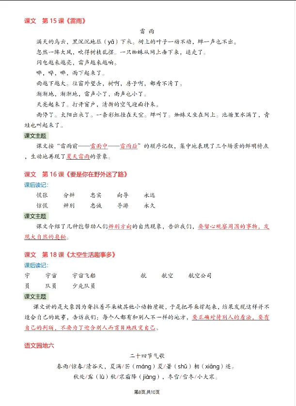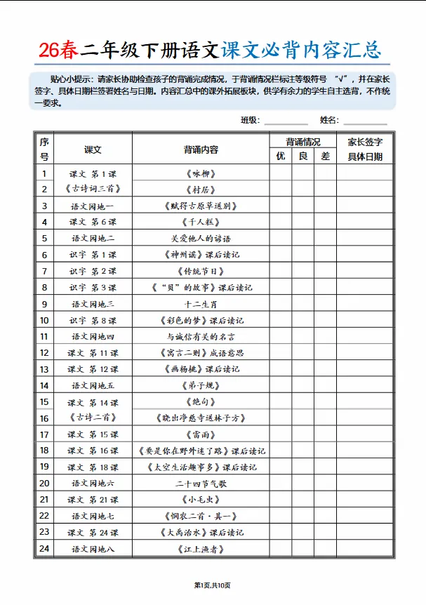 >学习资料库-1-31【26春1-6年级下册语文重点知识汇总-二年级下册】