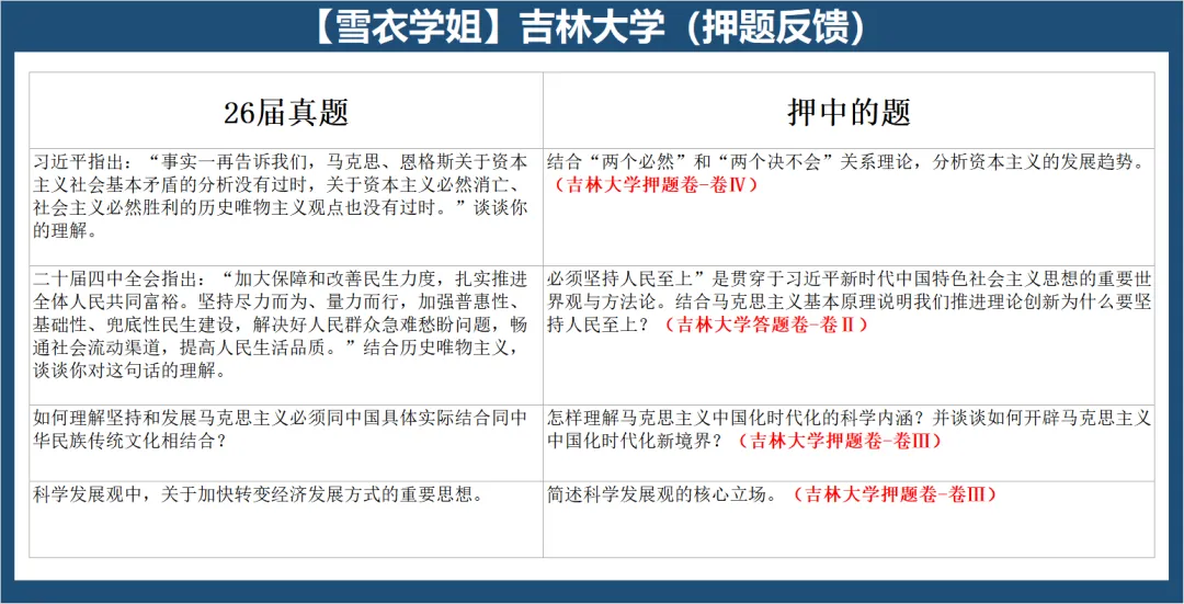 栏目初心是为27届备考马理论的宝子提前解锁各校最新真题、找准适配自己的目标院校,也为26届宝子的复试之路点亮指引方向的明灯。我们会精选各大高校最新真题,拆解为真题预览、押中的题、内容分析与答题思路、题目难度与备考策略四大板块,全方位拆解真题要点,让大家的备考之路少走弯路,思考更有深度,冲刺更有底气!