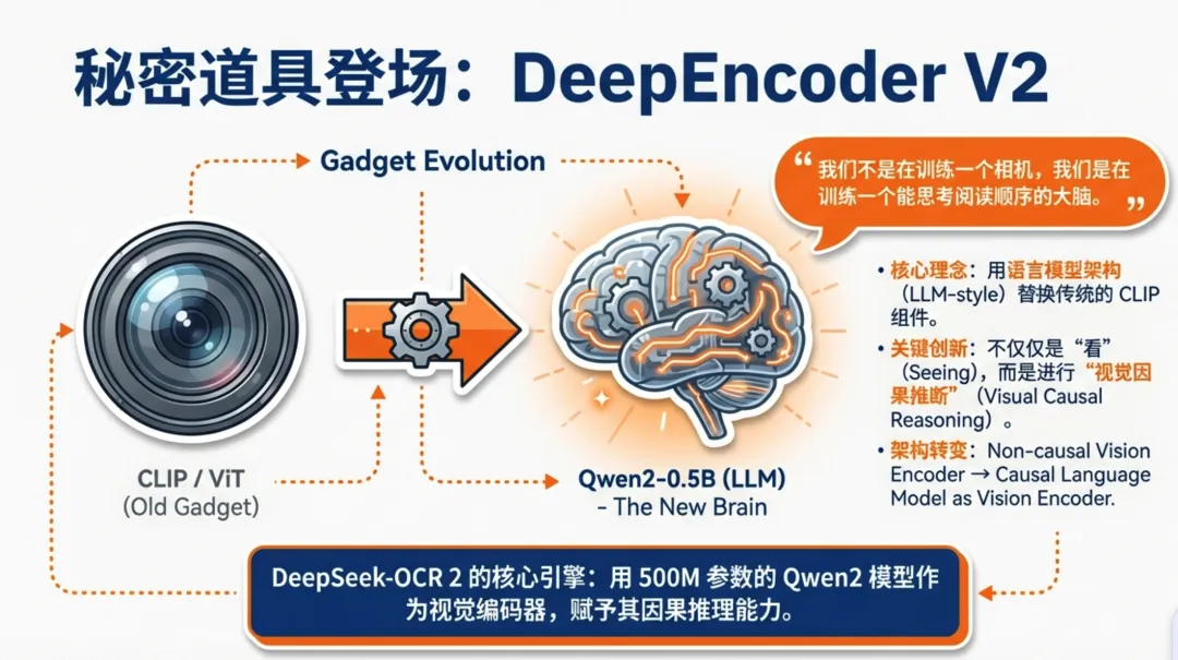 DeepSeek-OCR 2 最大的变革在于其编码器(Encoder)。