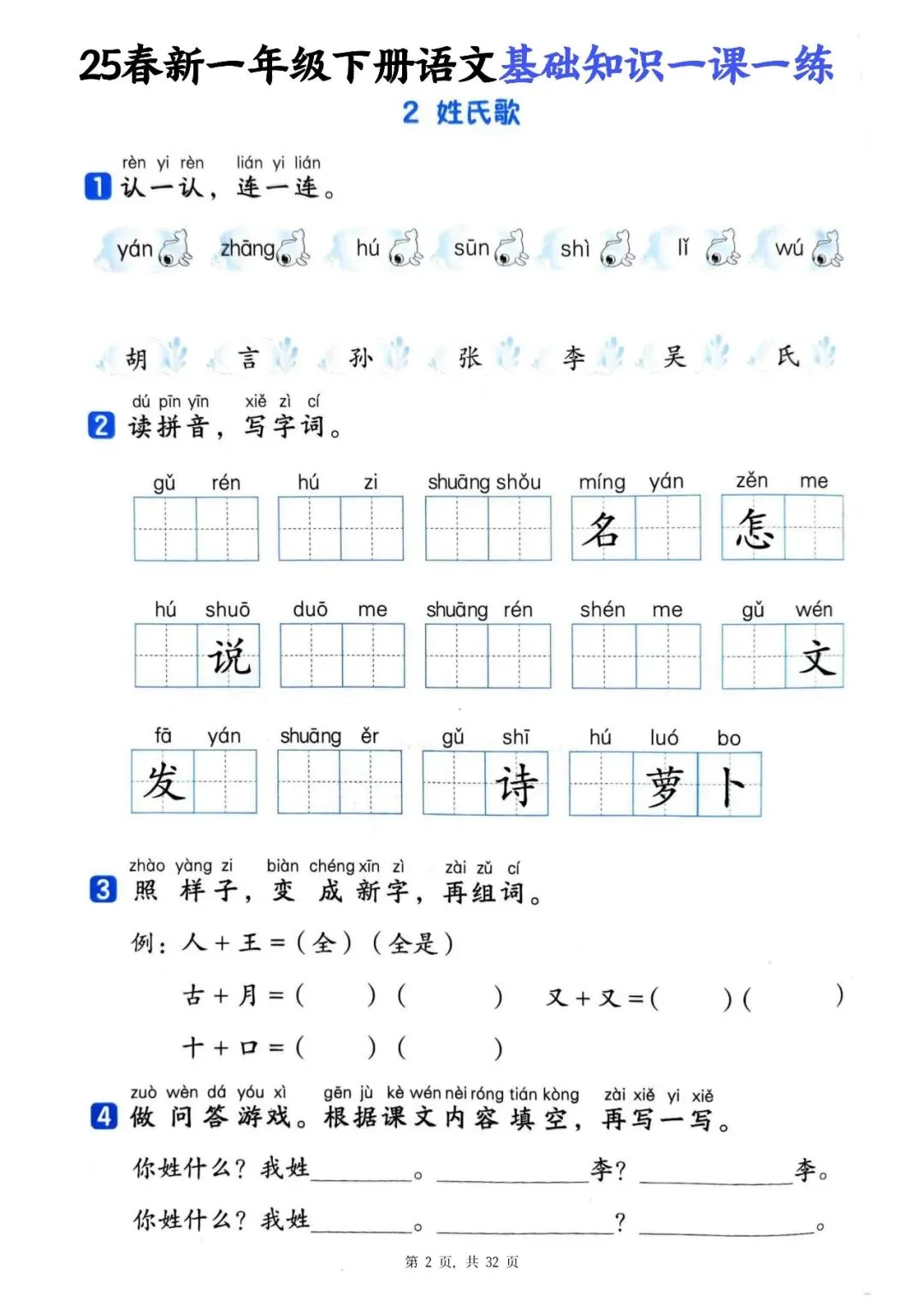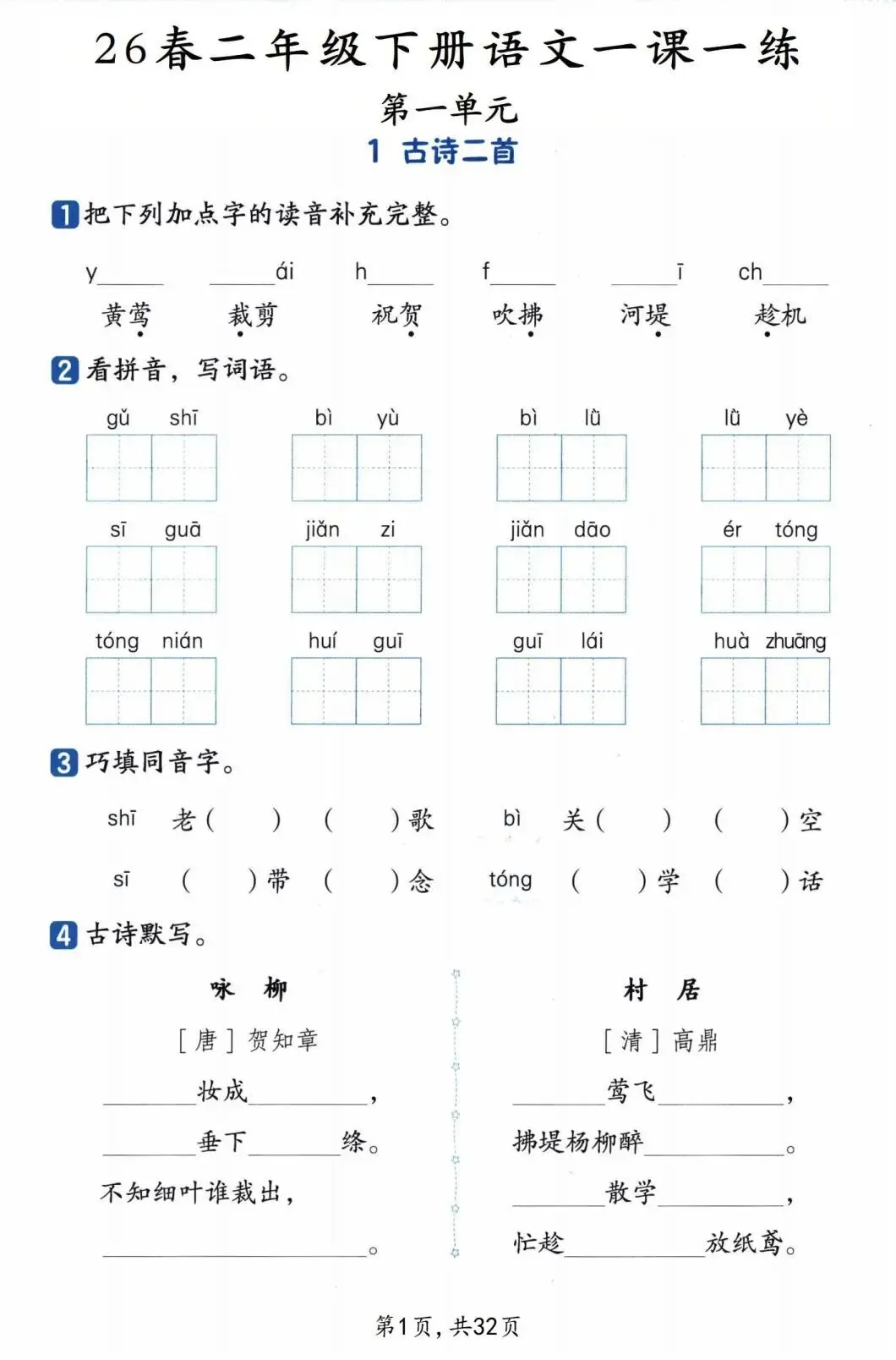 >学习资料 | 2026春语文1-6年级下册【一课一练】含答案,高清电子版,可直接下载