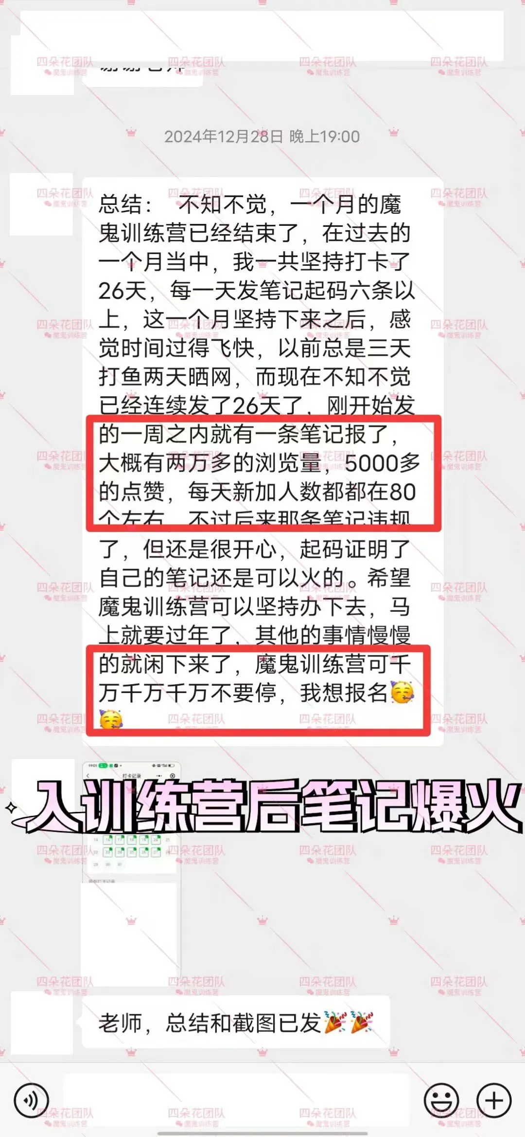 当你缺少灵感、发笔记得不到有效回应时,当你为首图、副图的制作犯难时,当你遇到系统挑战、不知如何突破时,不妨来魔鬼训练营看看。