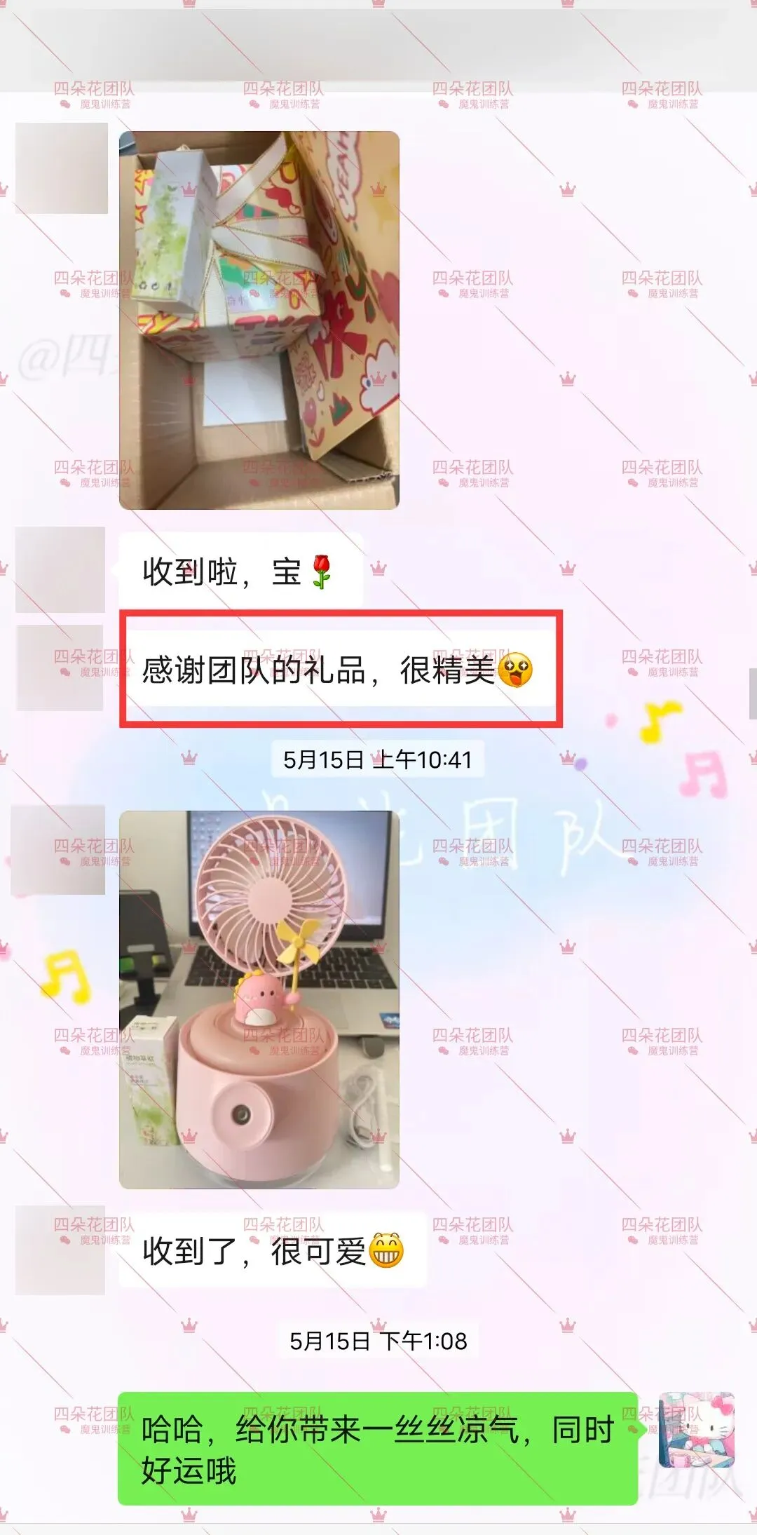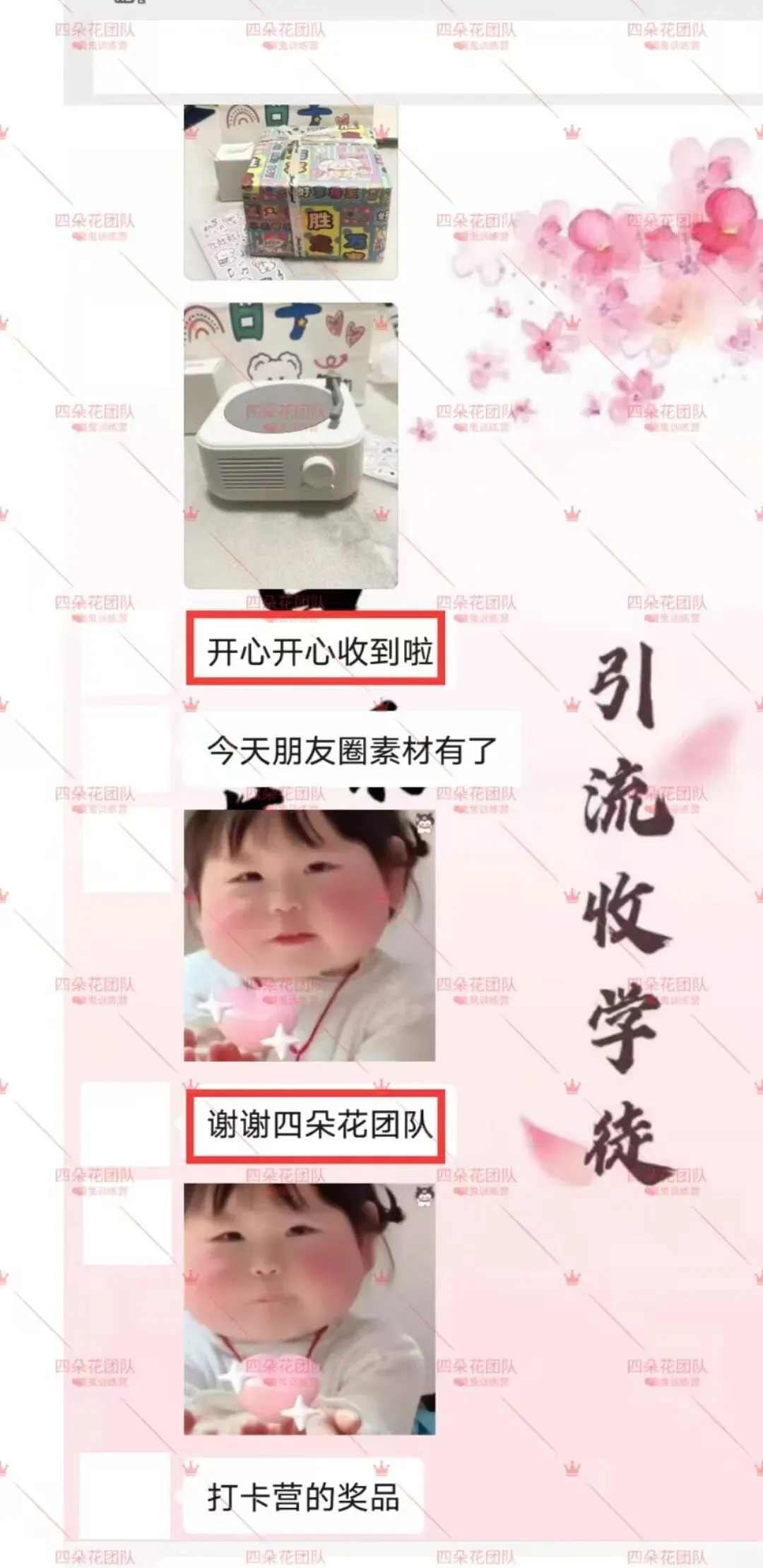 四朵花团队始终对每一个分享经验的优秀学员心存感恩,凡是参与分享的优秀学员,不仅能免费进入下期训练营,还能获得四朵花亲选小礼物哦!这就是我们与学员之间,双向奔赴的温暖与成长!