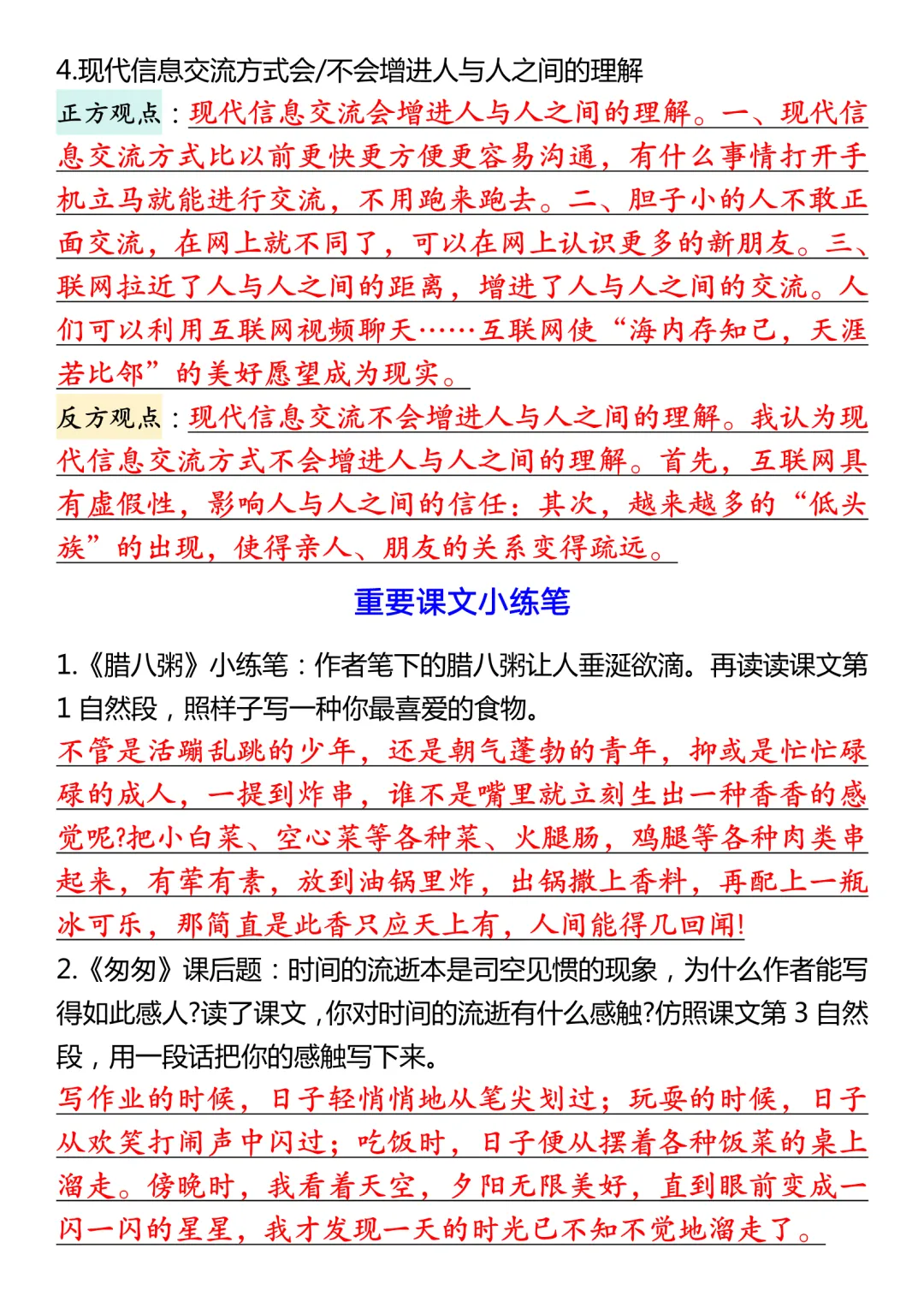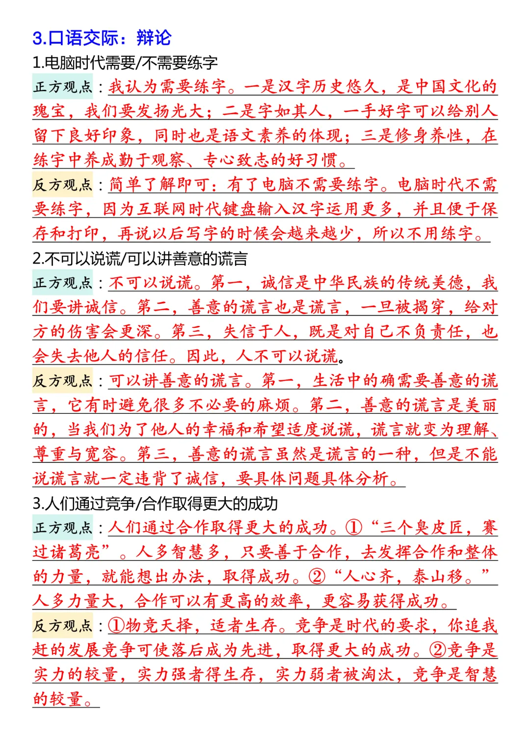 >六下语文(口语交际、课后小练笔)寒假预习学习资料~