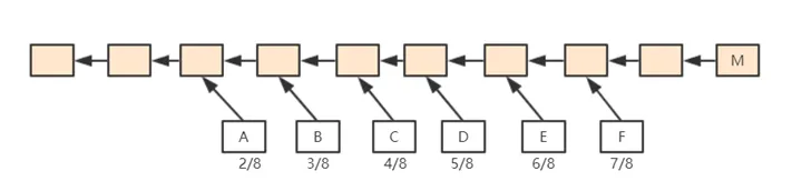 比如上图中,A、B、C都是E的叔父区块,在B区块之前的最长合法链上的分叉都是E区块的叔父区块。但是叔父区块获得的奖励是递减的,按照辈分级别,从7/8→6/8