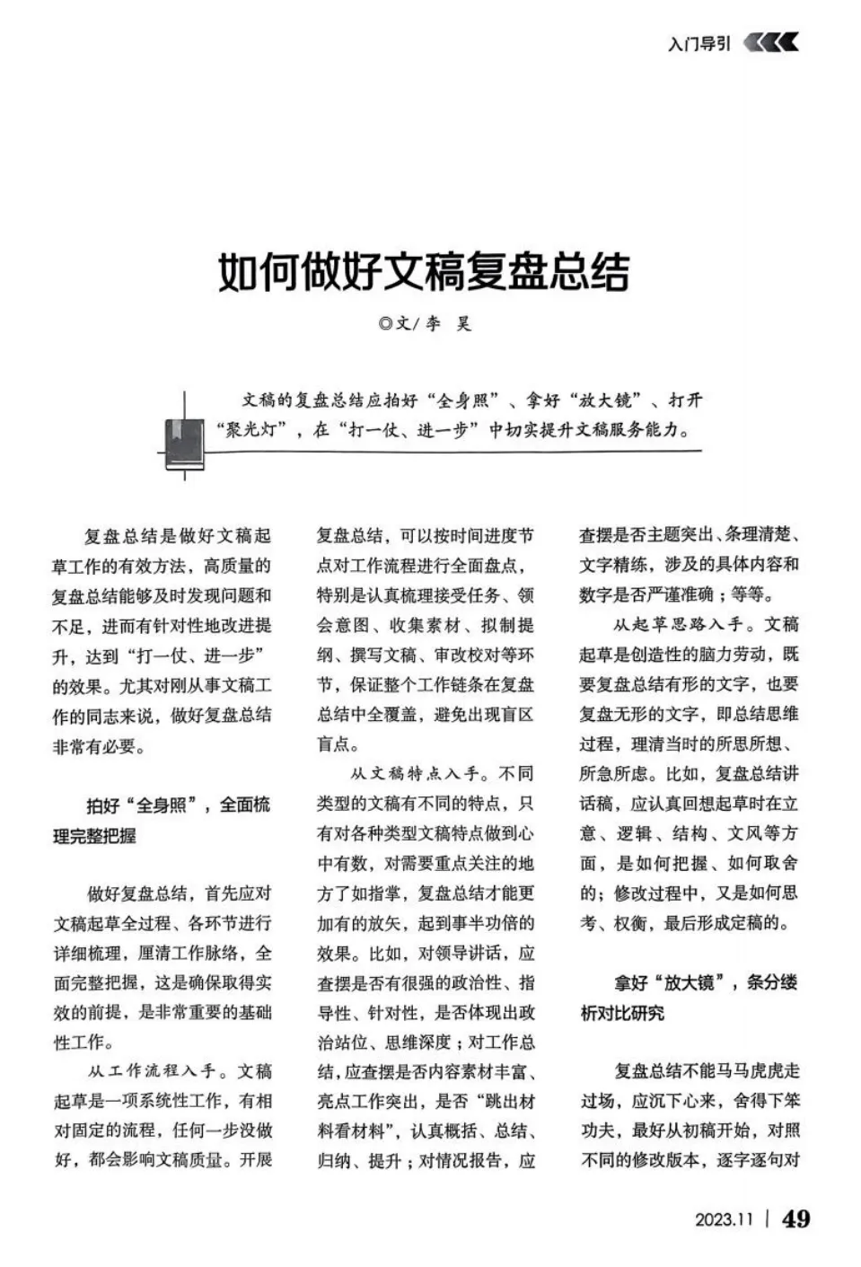 秘书工作学习笔记: 如何做好文稿复盘总结