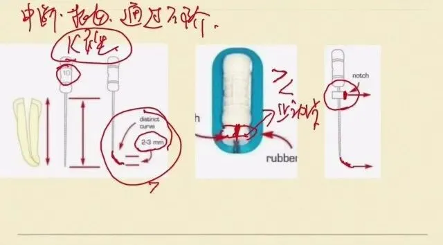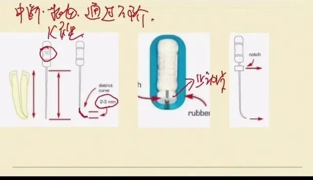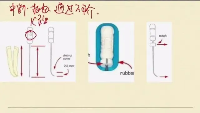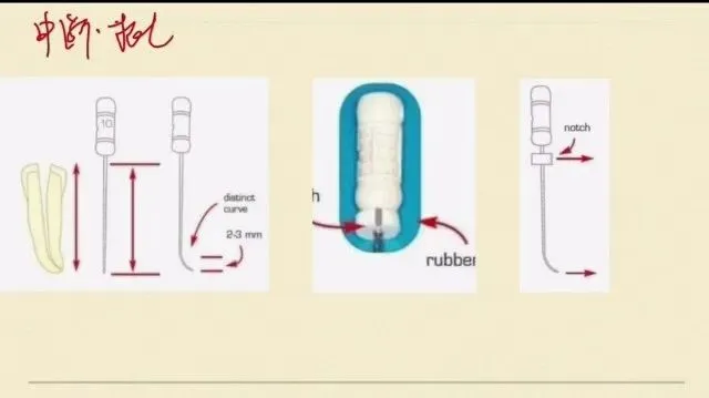 止动片跟我们预弯的方向是一致的,这样能够保证我们的锉在进入根管的时候,我们能看到它进入的方向,也就是标记的方向。