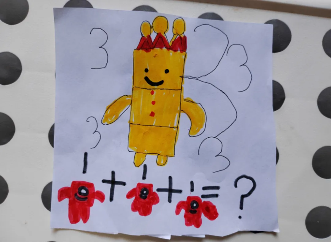 5-主角:可以使用图片主角的一样玩具、贴纸,或者用一个乐高积木替代,或者彩色打印机打印出来,再不行,和孩子动手画一个(动物、植物、人物)。