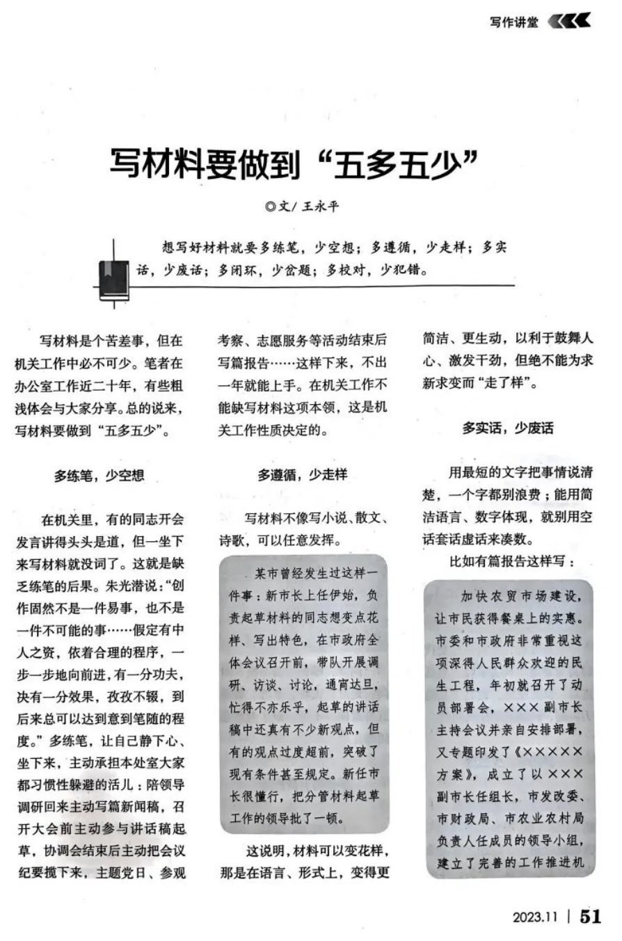 秘书工作学习笔记: 写材料要做到“五多五少”