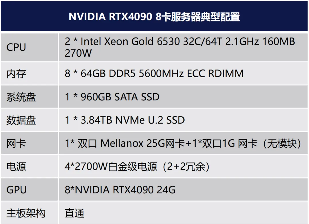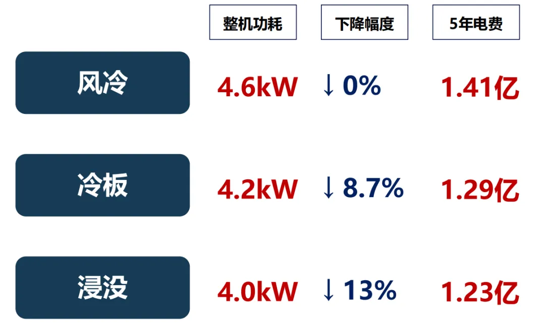前几天听了淼算科技-液冷专家赵总线上的“液冷技术讲解”,对于主流液冷方案有了更全面的了解,今天和大家简单做个分享,比如同样是一台4090八卡服务器用风冷、冷板及浸没对于耗电量的不同,液冷两种主流方案“冷板”和“浸没式”相比各自的优缺点,冷板&浸没方案中冷却液有哪几种优缺点如何?等等下面是目前市场主流的4090八卡机的配置,可以看到设备包括了2颗至强第五代CPU、512G DDR5的内存、1块系统盘、一块加速盘、4块2700W冗余电源以及8张4090的GPU卡;我们按照粗略估算,单台设备风冷的情况下整机最高功耗约为4.6kw;冷板的散热方案下最高功耗约为4.2kw,浸没式方案的最高功耗约为4.0kw;我们按照1000台的规模,满负荷运行5年,电费按照7毛一度电算,5年累计可节省约1800万的电费,计算方式如下:1、风冷版的4090八卡机五年电费计算方式如下: