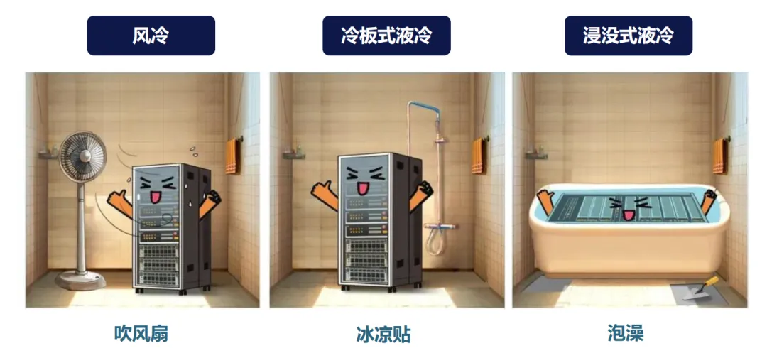 简单分析一下主流GPU服务器的散热方式,风冷方案可类别为天热吹电扇,冷板方案则可类比为通过退热贴的方式带走热量,而浸没式类比为直接用浴缸泡澡,虽然都能解决散热但是效率有所不同;液冷方案中冷板和浸没目前市场比较成熟且应用比较广泛,两种方案各自的优缺点如何呢?分析如下 | | |