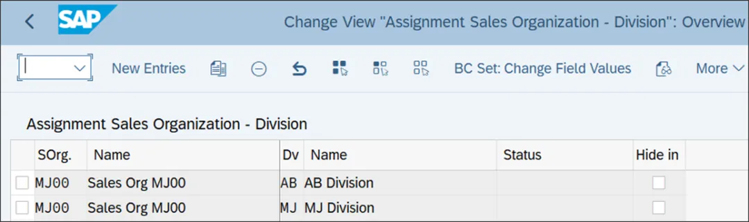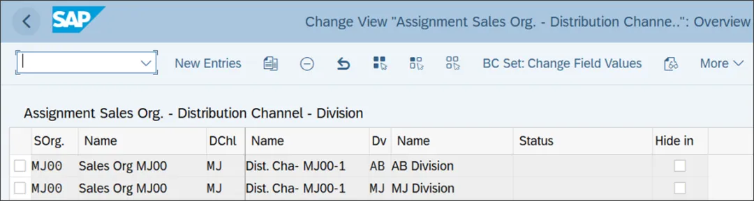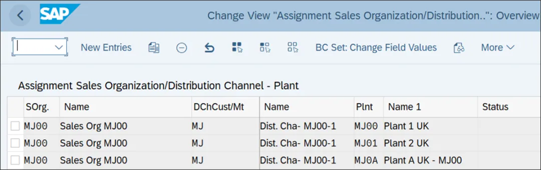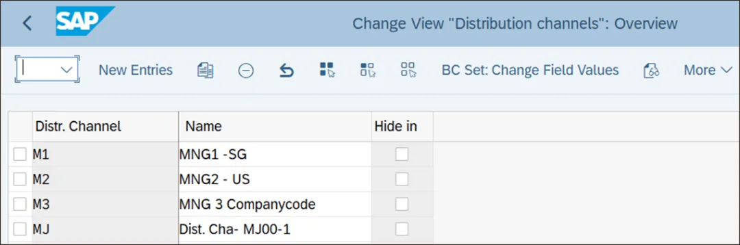 分销渠道是一个组织单元,代表向客户提供产品和服务的方式。分销渠道被分配给销售组织。每个分销渠道可以有自己的客户细分、产品和定价策略。这有助于有效管理和跟踪销售业务。要为销售组织定义分销渠道,执行事务SPRO并导航至企业结构 • 定义 • 销售和分销 • 定义、复制、删除、检查分销渠道。下图展示了分销渠道M1、M2、M3和MJ。点击“新条目”来定义一个新的分销渠道或复制一个现有分销渠道进行编辑。定义一个由两个字符组成的唯一字母数字或数字键来定义分销渠道,并在“名称”字段中输入名称。分销渠道被分配给销售组织。一个销售组织可以分配多个分销渠道。要将分销渠道分配给销售组织,执行事务SPRO并导航至企业结构 • 分配 • 销售和分销 • 将分销渠道分配给销售组织。工厂被分配给销售组织和分销渠道的组合(或多个组合)。要将工厂分配给分销渠道和销售组织的组合,执行事务SPRO并导航至企业结构 • 分配 • 销售和分销 • 分配销售组织 - 分销渠道 - 工厂。下图显示工厂MJ00、MJ01和MJ0A被分配给分销渠道MJ和销售组织MJ00的组合。点击“新条目”将分销渠道分配给销售组织。产品组是销售和分销中的一个组织单元,它代表销售组织内的一个产品系列。使用产品组对不同类型的产品和服务进行分类,以管理销售、定价和分销流程。这有助于制定和执行组织的销售策略。要定义一个产品组,执行事务SPRO并导航至企业结构 • 定义 • 后勤常规 • 定义、复制、删除、检查产品组。下图展示了产品组00、01、08和10。点击“新条目”来定义一个新的产品组或复制一个现有产品组进行编辑。为产品组定义一个由两个字符组成的唯一字母数字或数字键,并输入名称。一个产品组被分配给一个销售组织。一个销售组织可以分配多个产品组。要将一个产品组分配给一个销售组织,执行事务SPRO并导航至企业结构 • 分配 • 销售和分销 • 将产品组分配给销售组织。下图显示产品组AB和MJ被分配给销售组织MJ00。点击“新条目”将产品组分配给销售组织。在销售和分销中,销售区域是销售组织、分销渠道和产品组的组合。销售区域是向客户分销产品和服务的独特销售渠道。它有助于定义销售活动、定价、运输和开票流程的范围。要设置一个销售区域,执行事务SPRO并导航至企业结构 • 分配 • 销售和分销 • 设置销售区域。在此步骤中分配销售组织、分销渠道和产品组的组合。下图展示了为销售组织MJ00设置的两个销售区域。点击“新条目”来设置一个新的销售区域或复制一个现有销售区域进行编辑。你若喜欢,点个❤️谢先👇