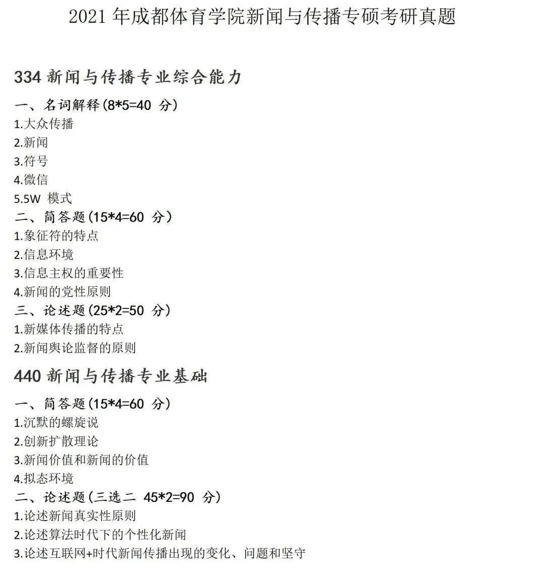成都体育学院新闻与传播考研真题2021