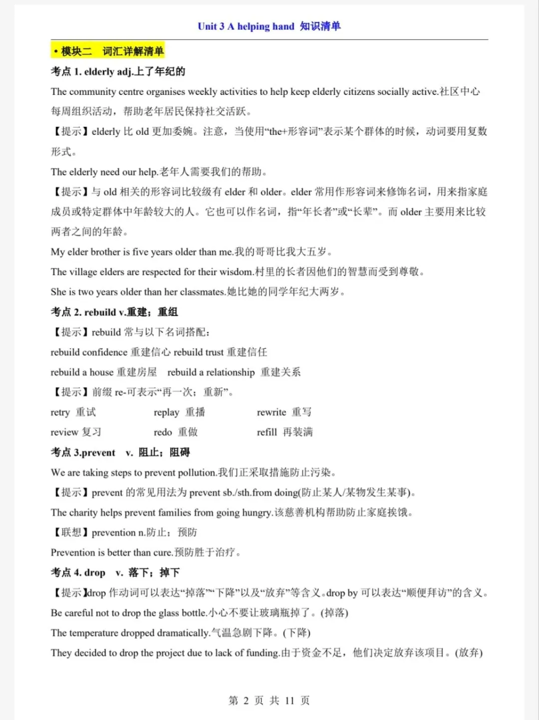 >【2.2】上海七年级下册英语学习资料---U3知识清单