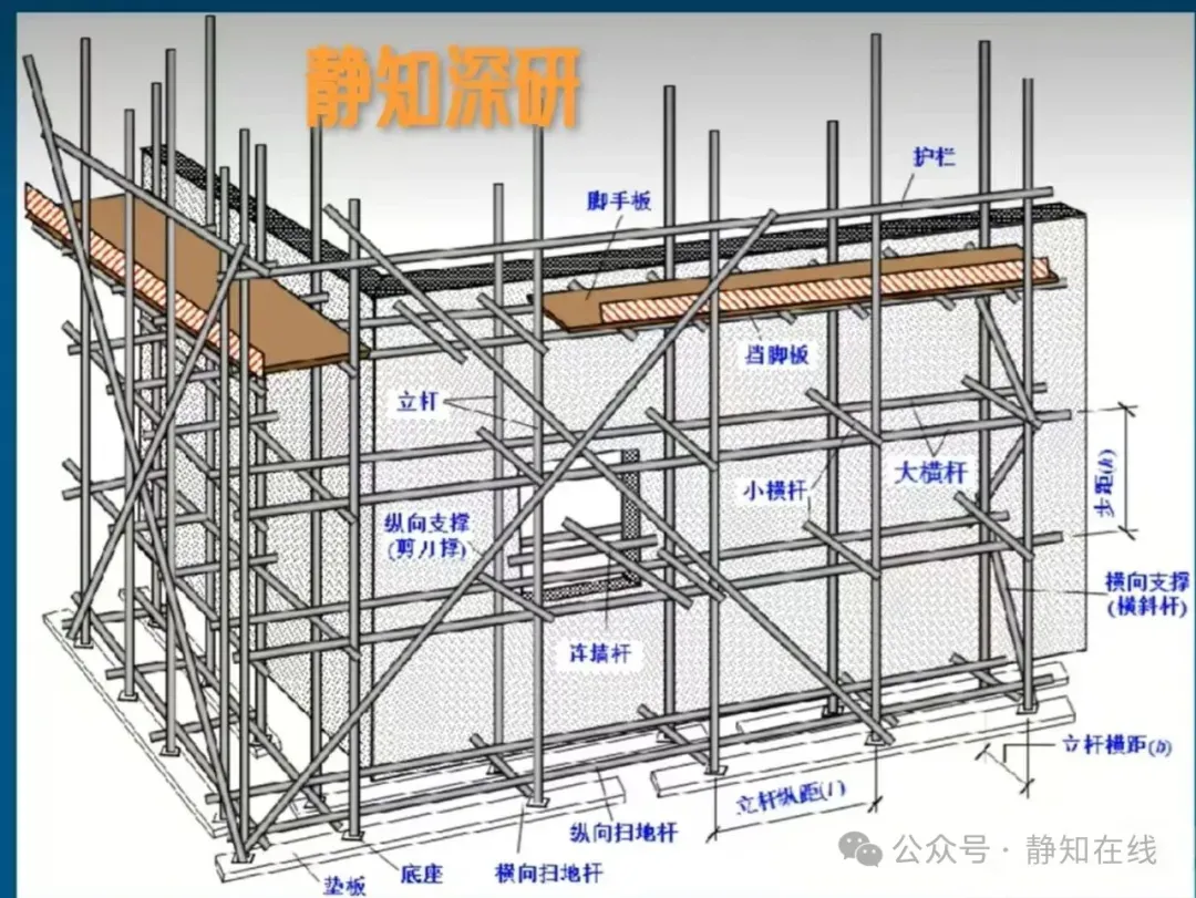 (3)未设置剪刀撑,脚手架整体稳定性不足;