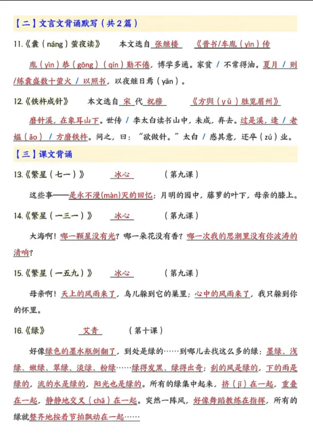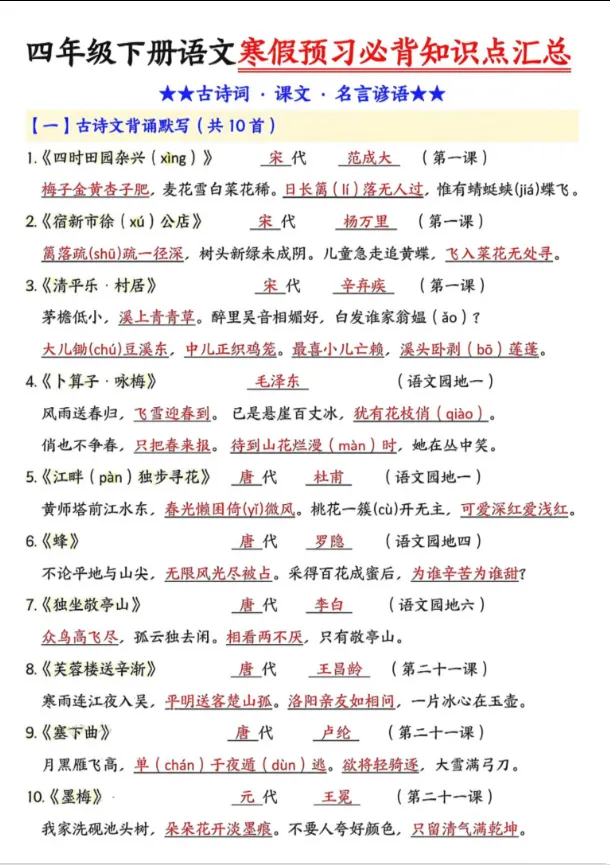 学习资料库-2-2【26春1-6年级下册语文重点知识汇总-四年级下册】
