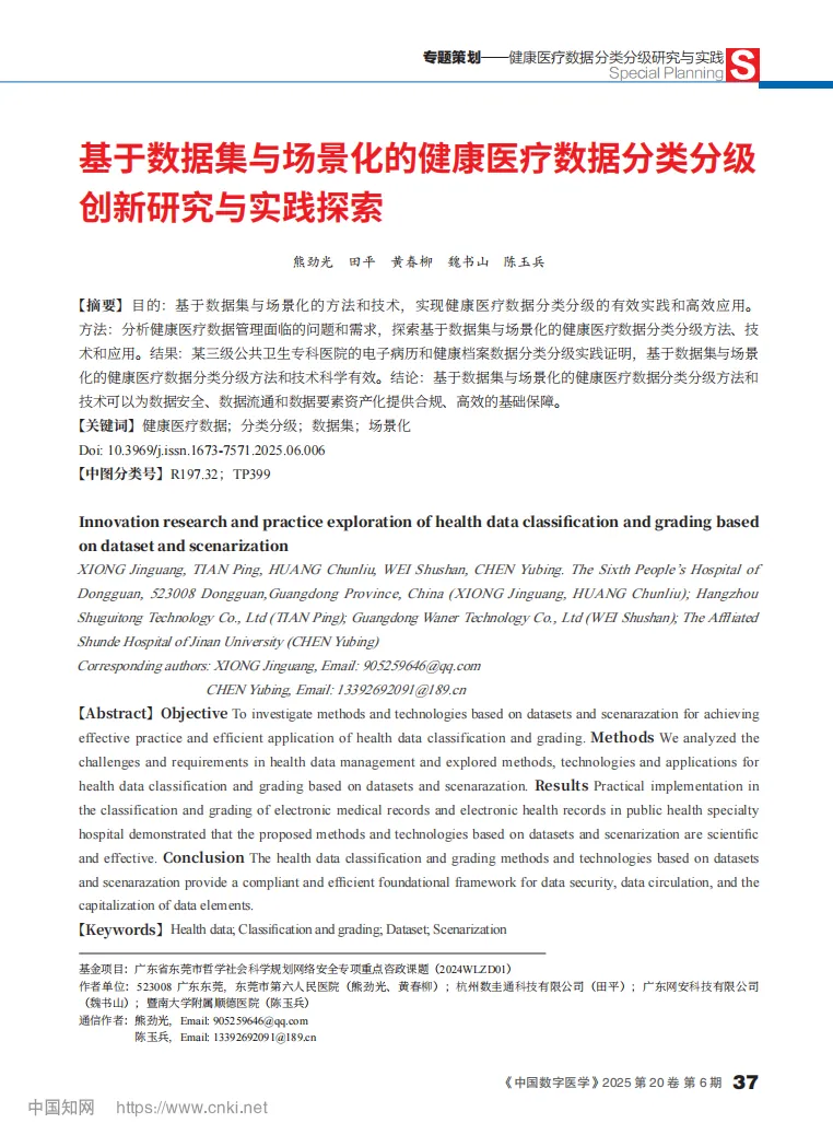 学习笔记 | 论文 | 《基于数据集与场景化的健康医疗数据分类分级创新研究与实践探索》_ 熊劲光