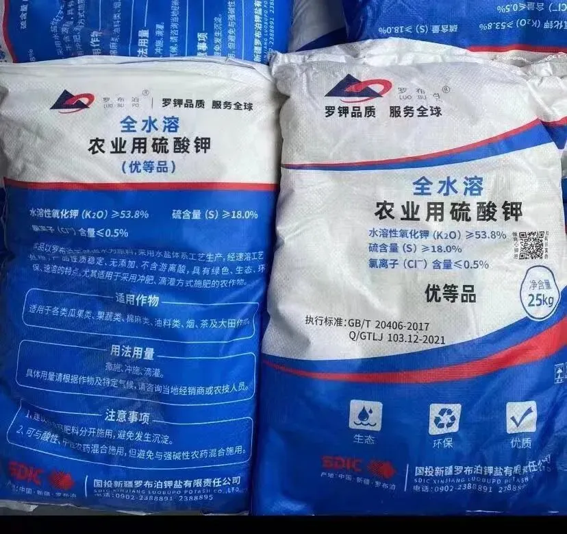 硫酸钾是一种无机盐,化学式为K2SO4,呈白色结晶性粉末,农用硫酸钾外观多呈淡黄色,是一种既含钾又含硫的肥料,氧化钾的含量40%-53%,硫离子含量14%-18%,氯离子含量极低,对土壤结构破坏性小,其硫酸根离子含硫,能帮助植物吸收硫养分,所以,硫酸钾几乎施用于各种作物,具有快速补钾补硫的特点,一般5天以后见效,持效期60天左右,尤其是对氯化钾不能施用的作物,硫酸钾能够更好提高其产量,改善作物品质,硫酸钾适合各种土壤和作物,特别是对氯敏感和喜硫的作物施用效果最佳,多数用于旱地使用,一般不用于水田,可以用作基肥、追肥、种肥使用。