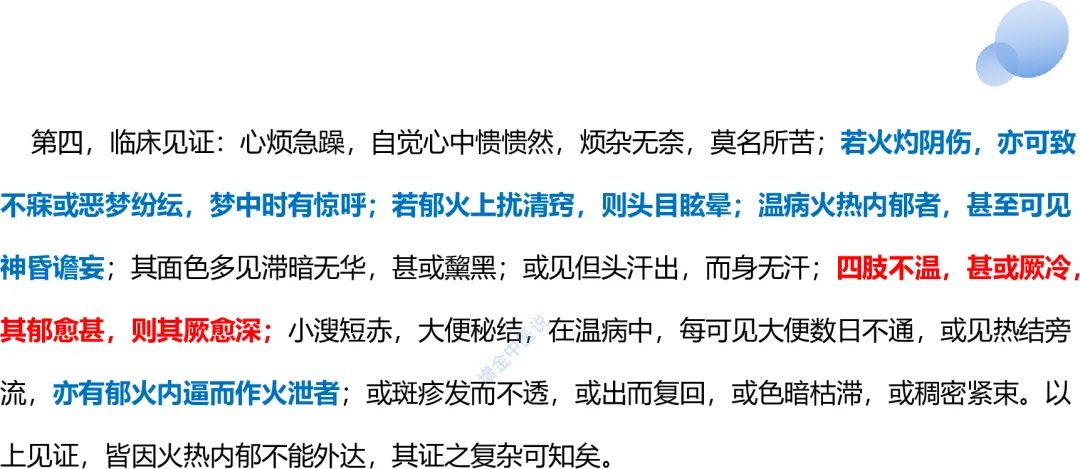 火郁发之,讲的最清楚的,我觉得是李士懋教授(李老的的一本书叫《火郁发之》,很值得学习,李老是临床医生,后来当了老师,所以讲课跟临床都很厉害)