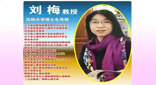 辽宁省家庭教育学会理事、沈阳大学师范学院应用心理学系原主任、教授、硕士生导师刘梅。