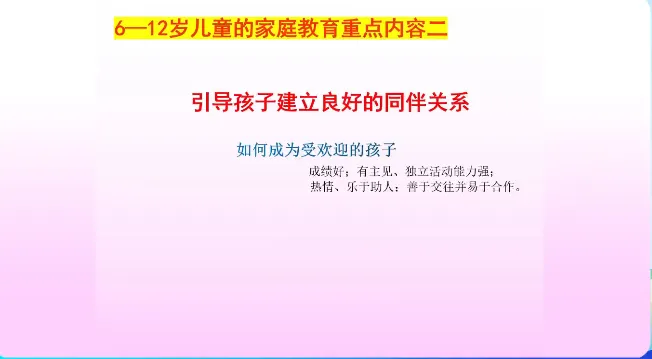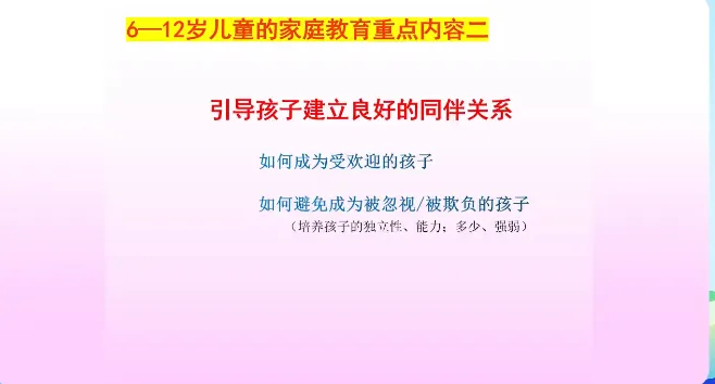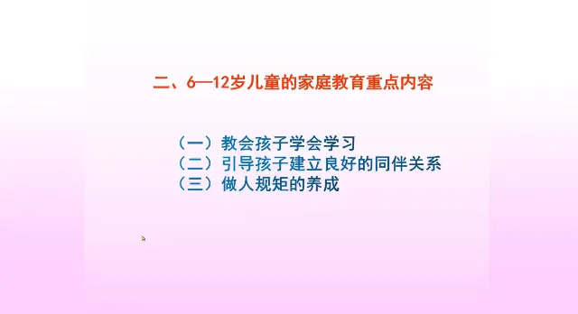 今天学习第十一课时《3-6岁家庭教育指导》、第十二课时《6-12岁儿童的家庭教育》。主讲人分别是