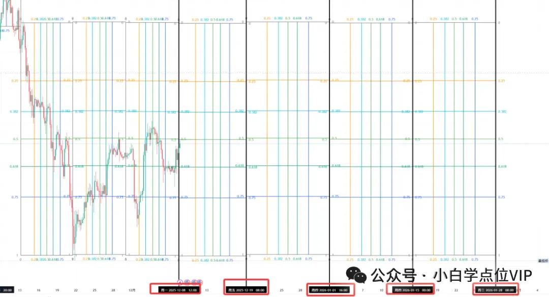 接下来的重要变盘时间节点在2026年2月3日(考虑是一个阶段性低点)、2026年2月9日、2026年2月21日。后续我们可以通过江恩角度线和波浪理论、威科夫模型或者缠论对其进一步筛选,过滤一些不重要的变盘节点,并判断是高点还是低点。