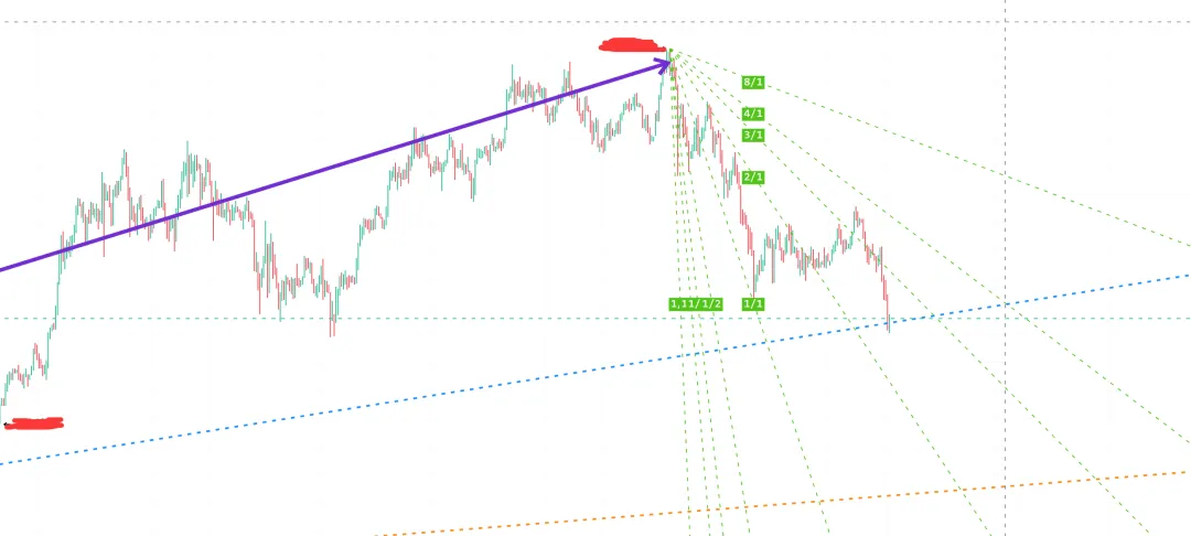 【阶段性大抵抗】关注蓝色江恩角度线的抵抗,目前在这里出现了阶段性的上升。