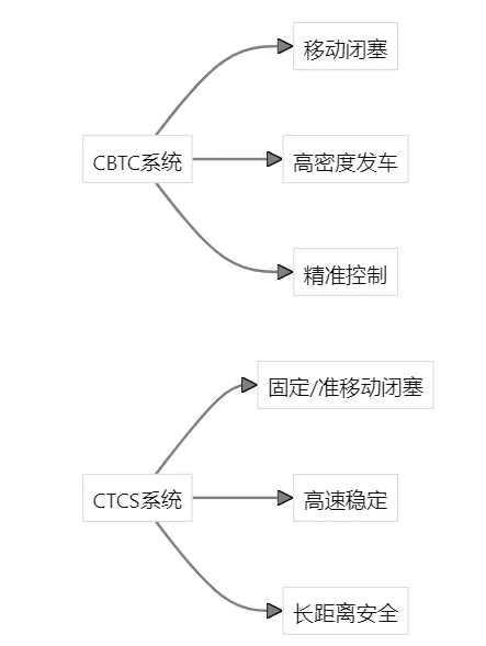 城轨系统普遍采用基于通信的列车控制 (CBTC)系统,其采用移动闭塞技术,具备高密度发 车与精准控制优势,适用于城市短间隔、高频次线路;