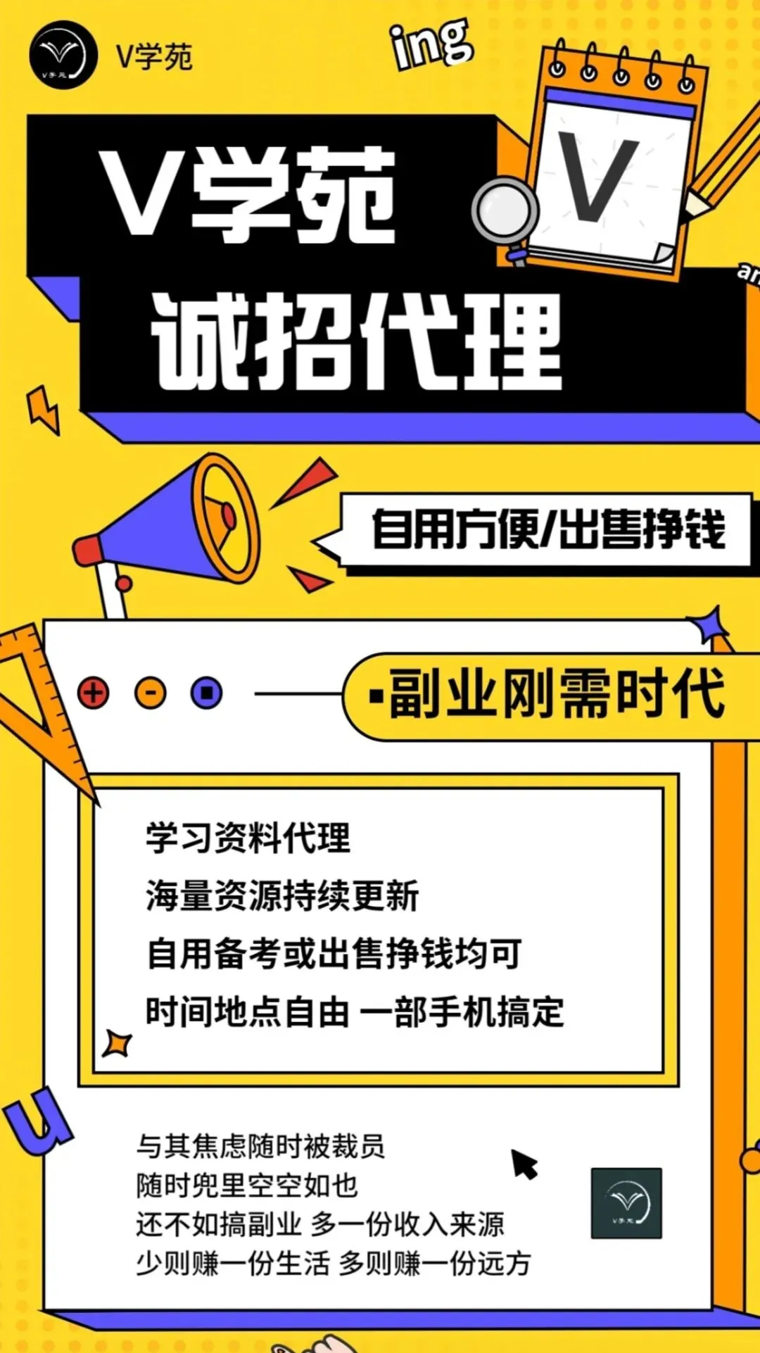 V学苑,不止是资料,更是你成长路上的合伙人。让我们一起,用知识赋能自己,用副业照亮生活。