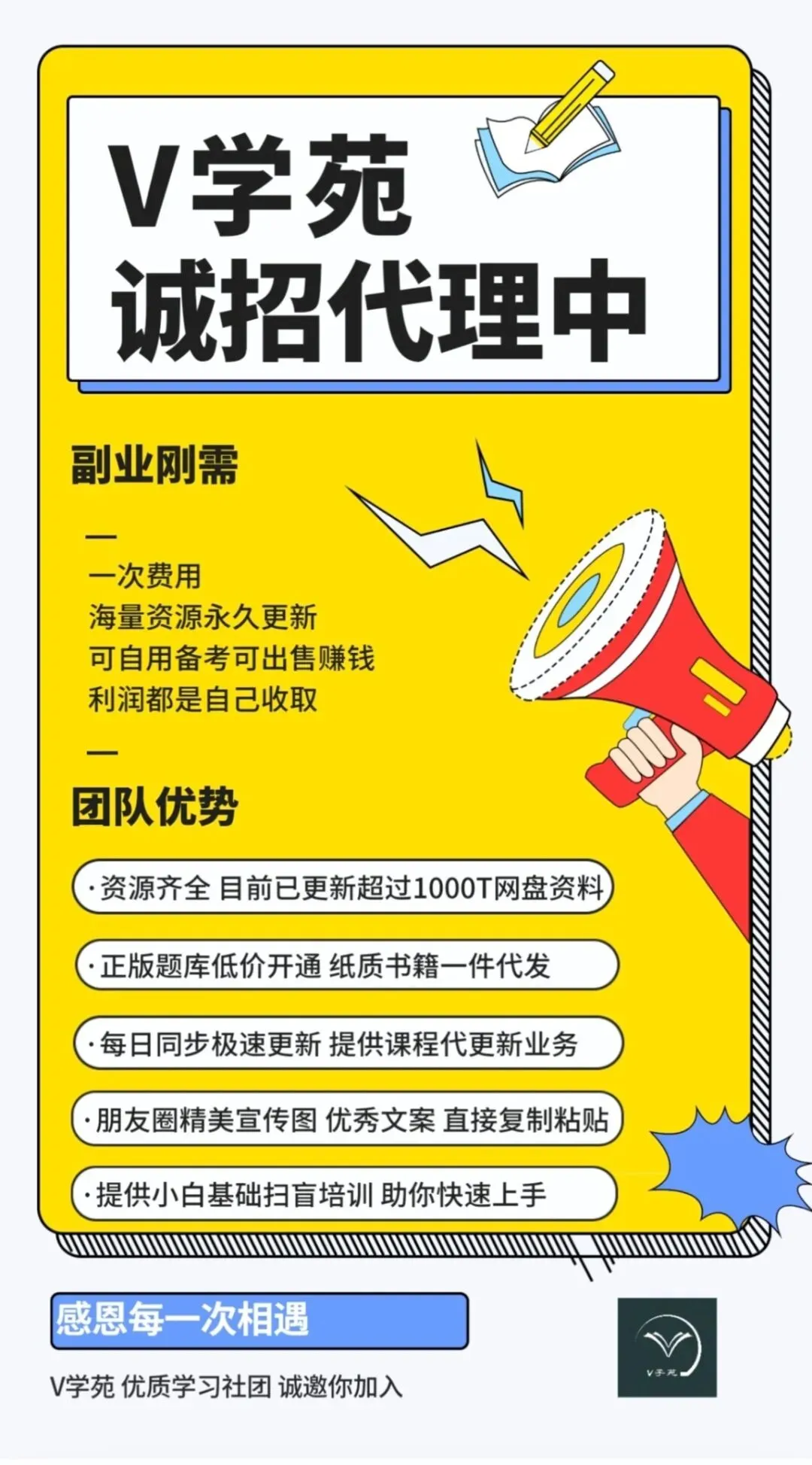 V学苑学习资料团队,正式面向全国,招募代理合伙人!
