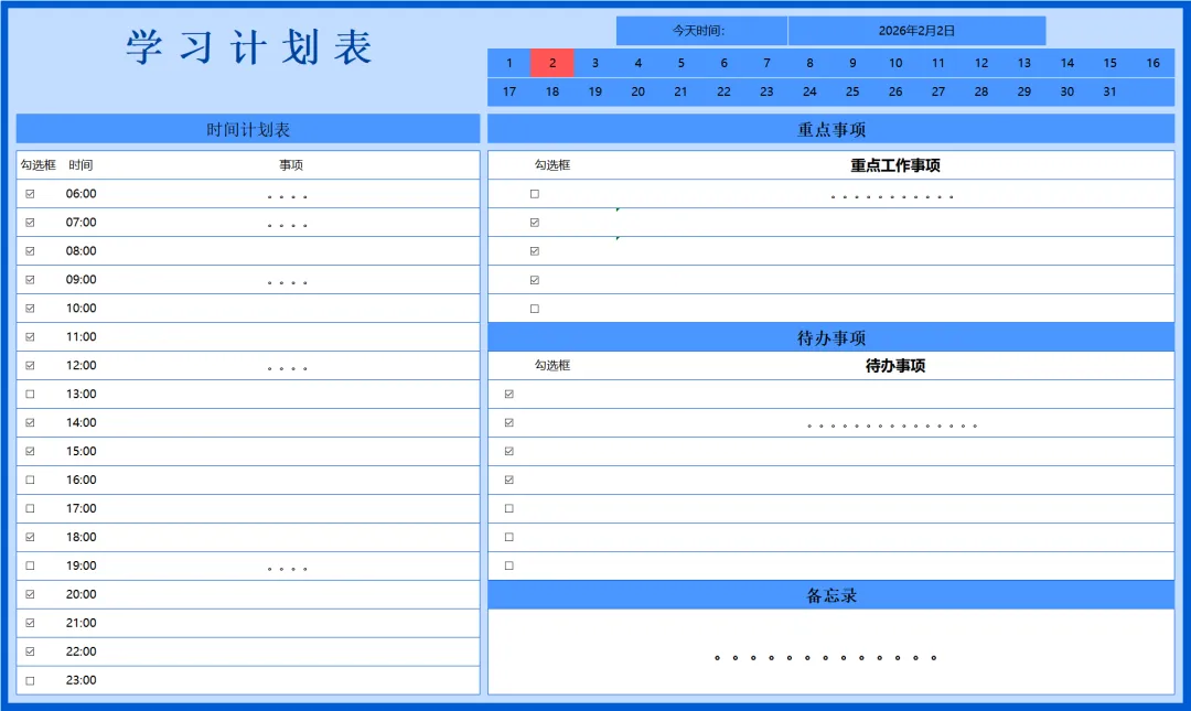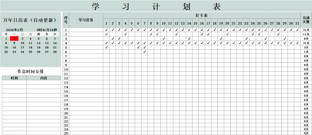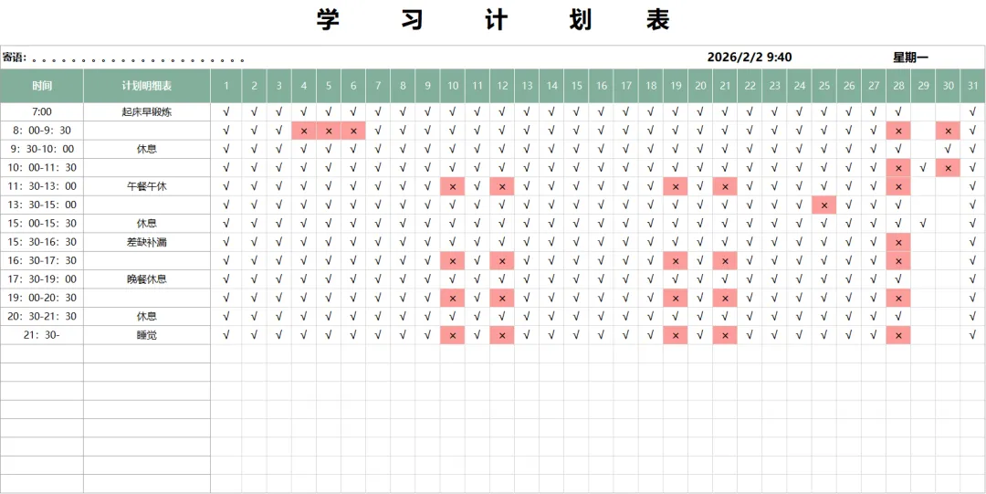 学习计划表预览