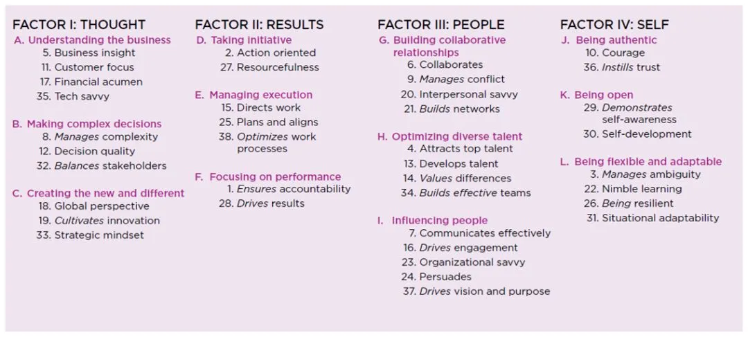 4 Factors, 12 Clusters, and 38 Competencies 4因子,12群簇,38项能力